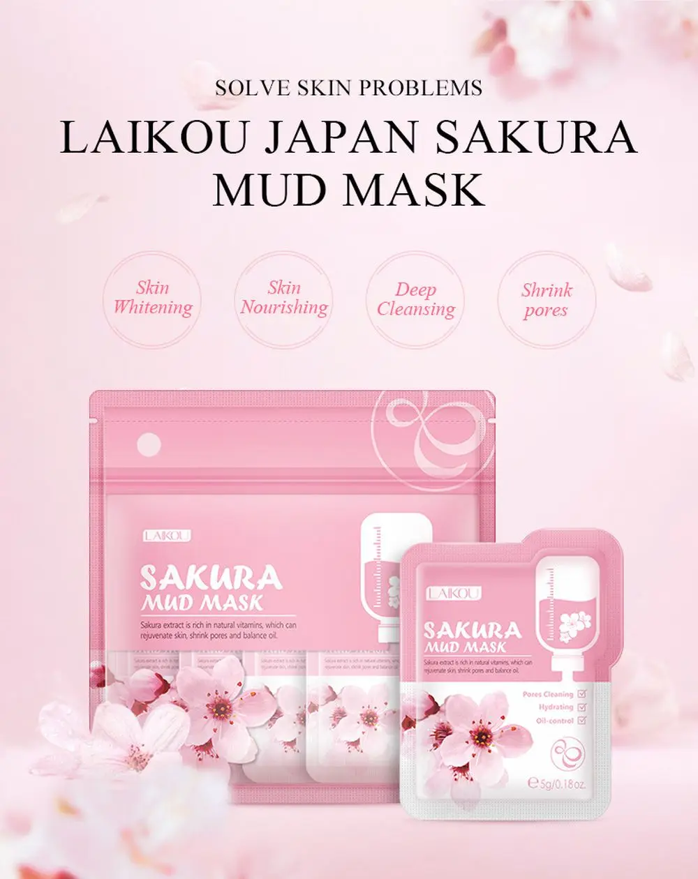 Грязевая маска для лица LAIKOU, 50 шт., японская, с Сакурой, против...