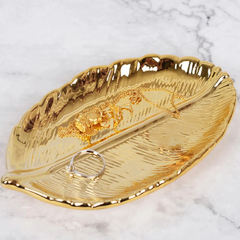 Поднос для хранения серебра, розовое золото, бижутерия из керамики эмаль, безделушка, глянцевая керамика, тарелка с листьями лист дерева, ювелирные изделия, закуски, десерт