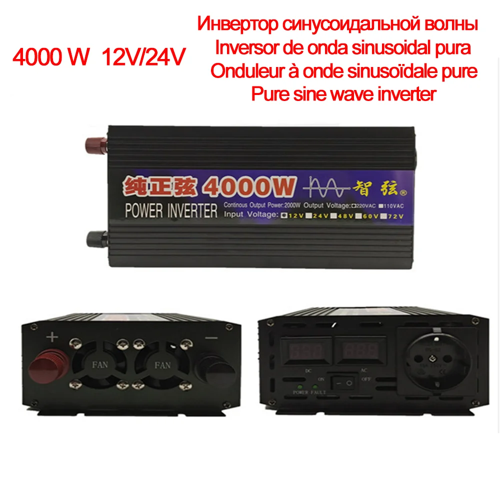 Инвертор немодулированного синусоидального сигнала, 4000 Вт, автомобильный мини-трансформатор напряжения, преобразователь солнечной энергии 12 В, 24 В постоянного тока в 220 В переменного тока, 110 В