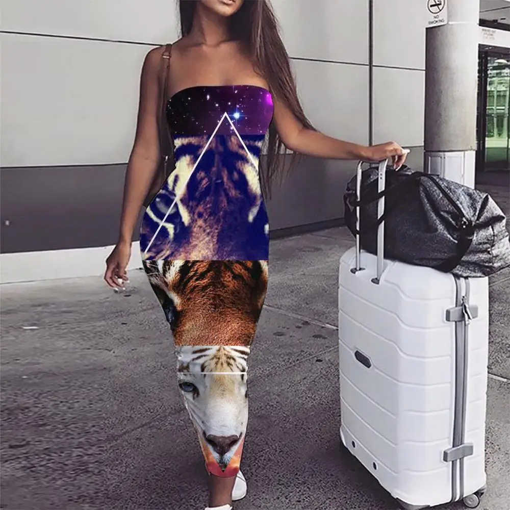 Женское платье в стиле бохо KYKU, разноцветвечерние вечернее платье с граффити, с кисточками, Туника без рукавов, большие размеры, платье с тигром