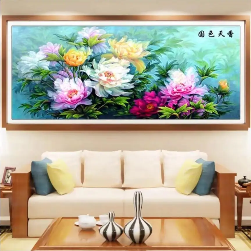 Вышивка крестиком с принтом, Набор для вышивки сделай сам в гостиную, Набор для вышивки крестиком, шелковая нить, цветы, пион