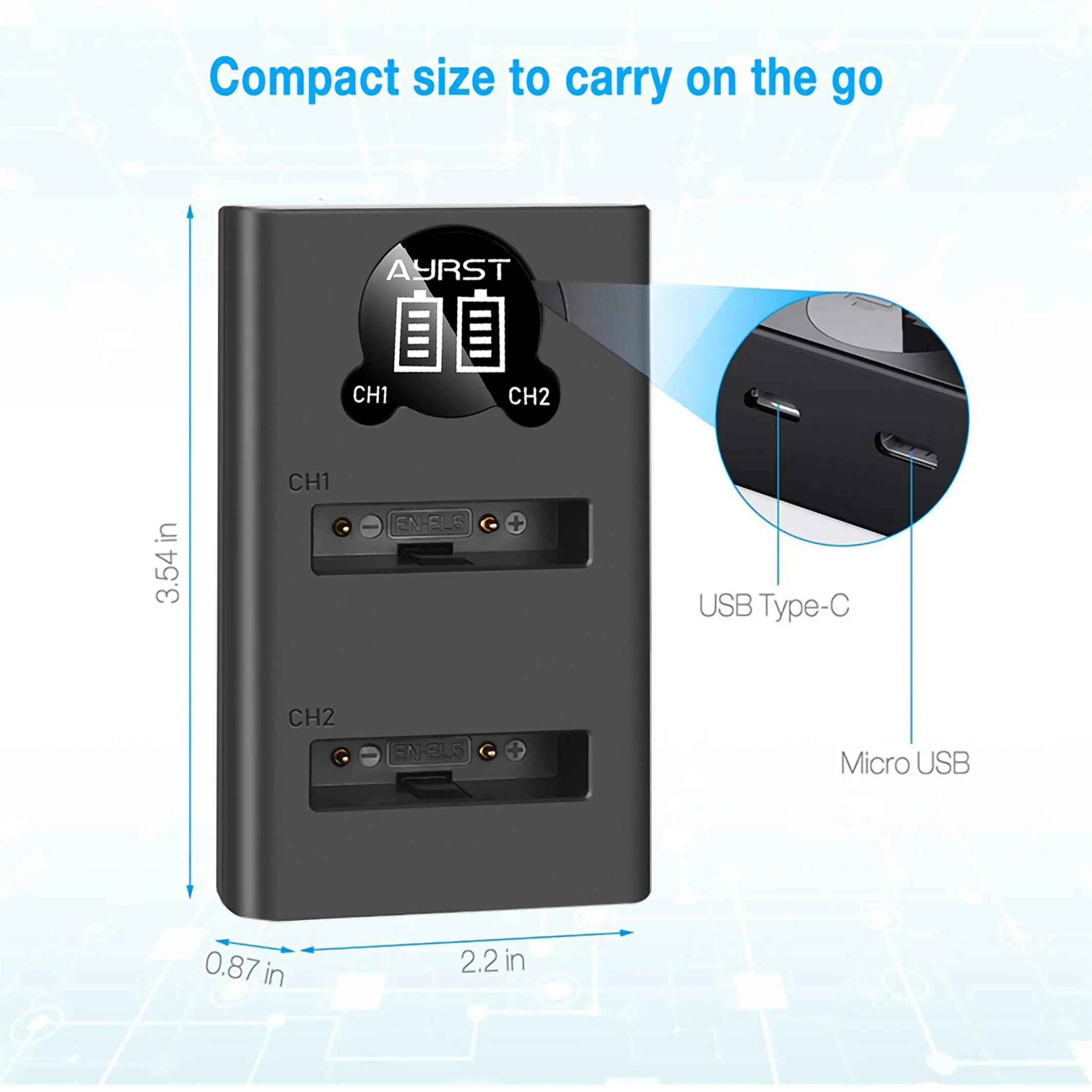 Зарядное устройство со светодиодсветодиодный подсветкой и двумя USB-портами для камеры Nikon Coolpix P530 P520 P510 P100 P500 P5000 P5100 P6000 3700 4200, 2 шт.