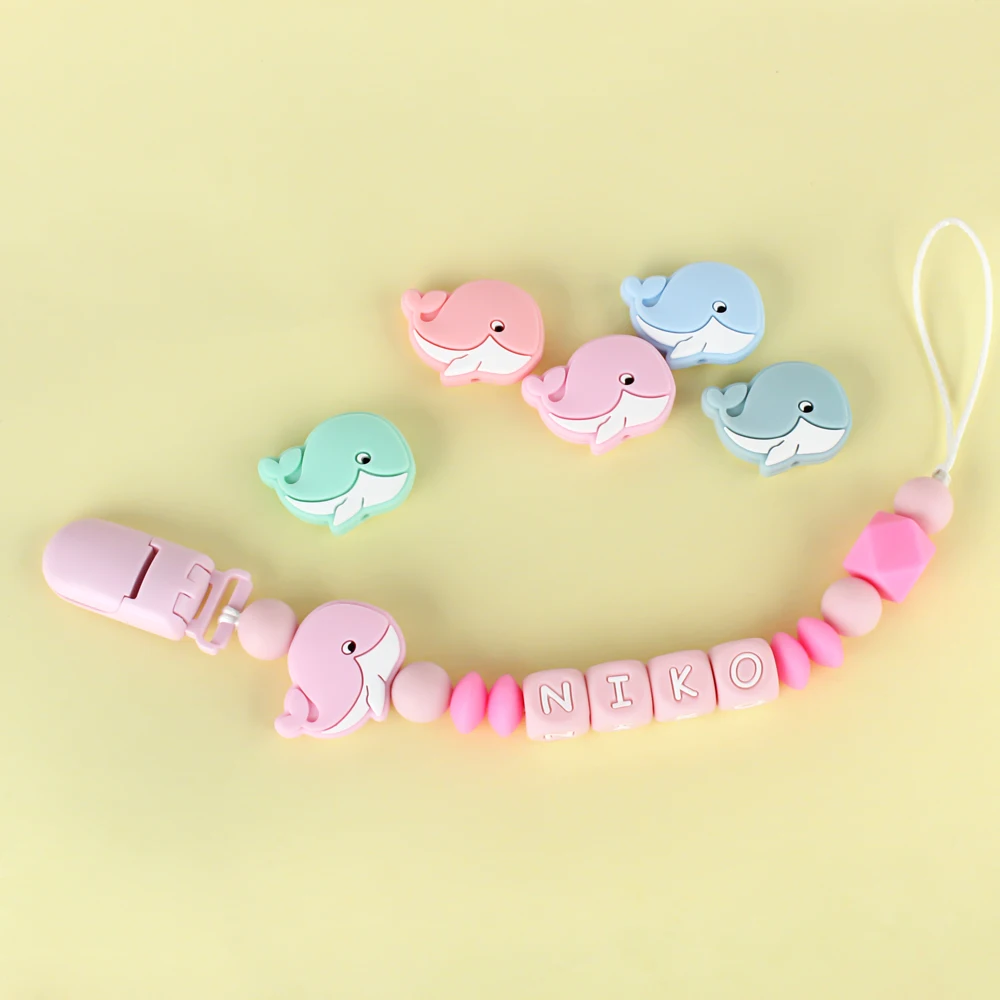 Силиконовые бусины в форме Кита, 5 шт., для ухода за полостью рта, молярные бусины для прорезывания зубов, самодельные соски, клипсы, аксессуары, игрушки