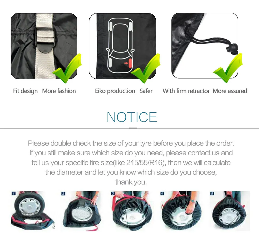 100% новинка, высокое качество;Размер можно свободно регулировать, с обеих сторон имеются ремни для усиления; С ручкой, очень удобно носить с собой;Эффективно сохраняет запасные шины чистыми;Подходит для внедорожников, бизнес-автомобилей, небольших автомобилей, фургонов, защищает запасные колеса вашего автомобиля