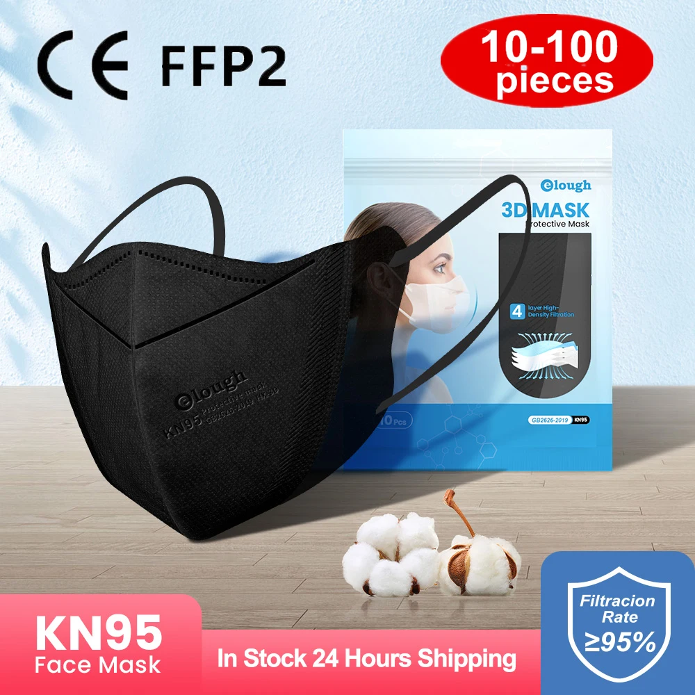 Elough KN95 3D Маска 10-100 шт. FFP2 negra Mascarillas 4-слойная мн...