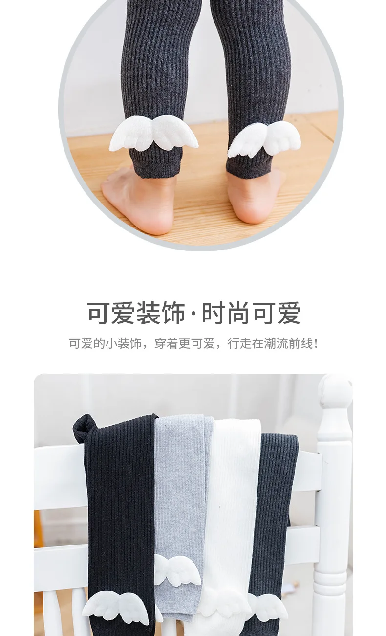 Леггинсы для маленьких девочек от 0 до 4 лет однотонные колготки для малышей с крыльями ангела милые вязаные Хлопковые Штаны для девочек, Новинка осени 2021 года