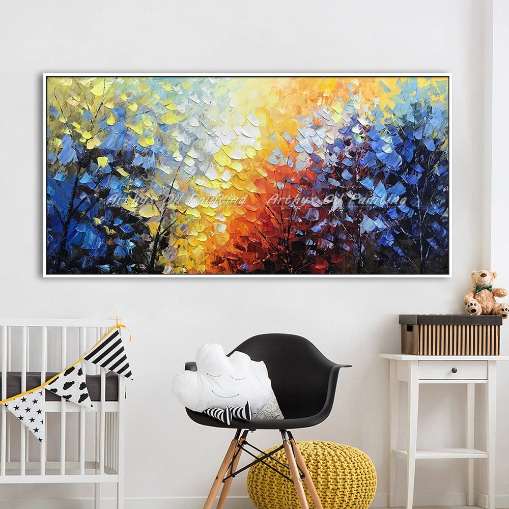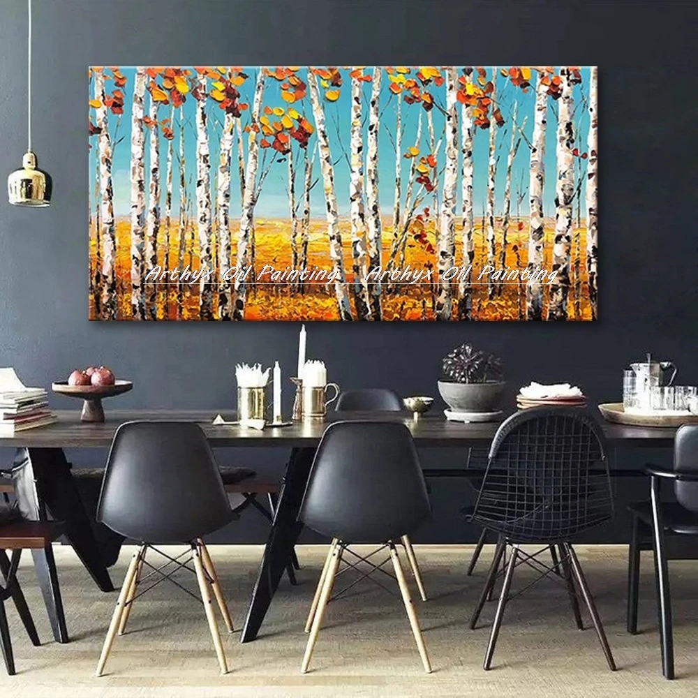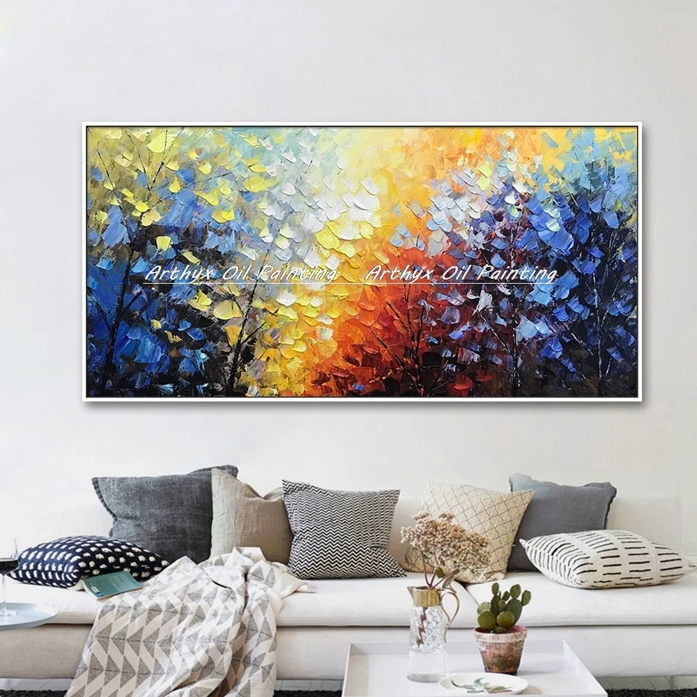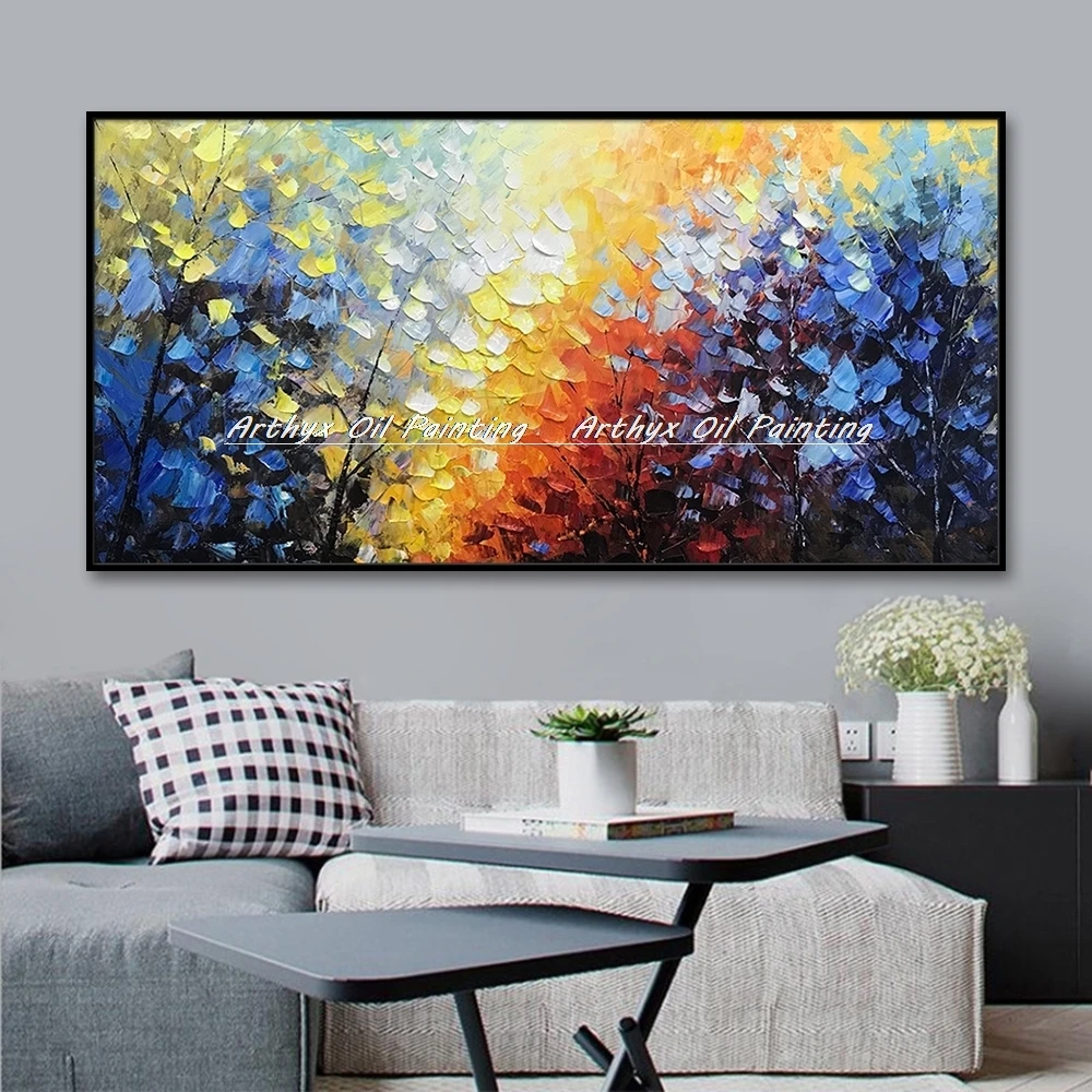 Arthyx абстрактный скандинавский пейзаж, картина маслом на холсте ручной работы, Толстая Текстура дерева, художественные настенные картины для гостиной, домашний декор