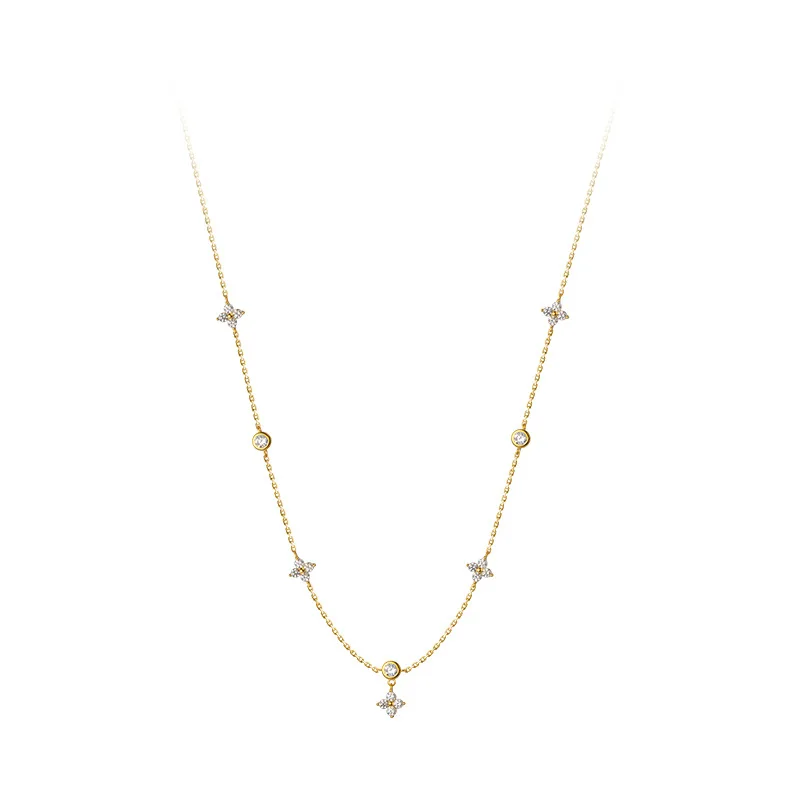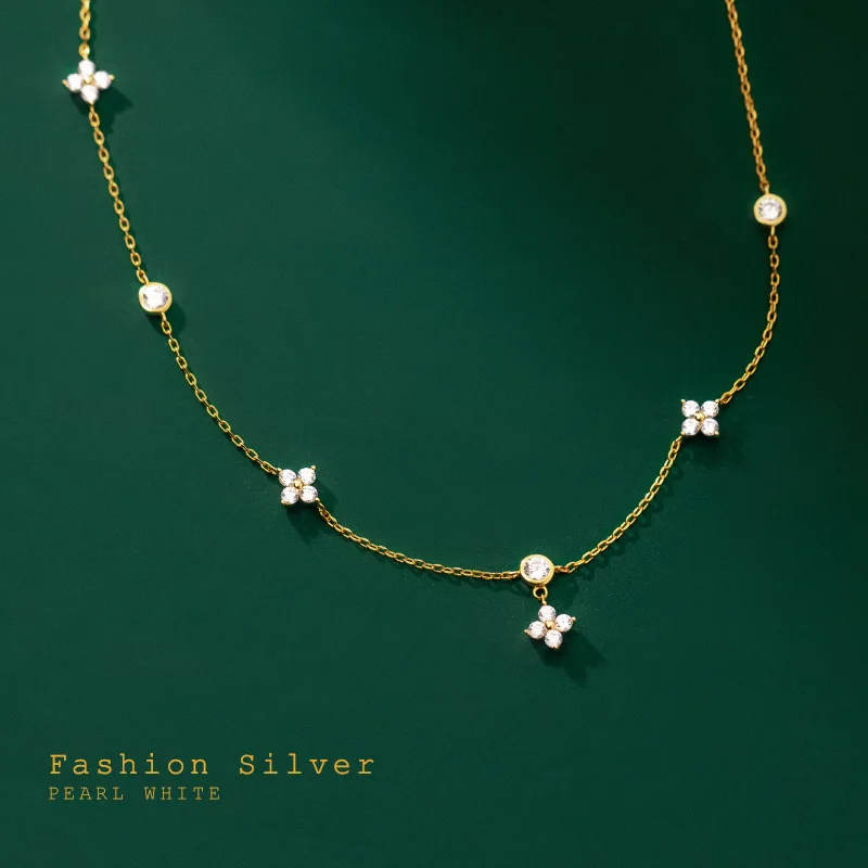 WANTME Очаровательная цепочка из стерлингового серебра 925 пробы с цветком в четырех листьях винтажное ожерелье с кулоном для женщин богемный Циркон 2021 ювелирные изделия