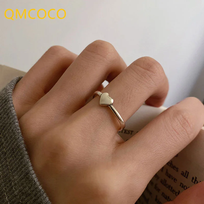 Свадебные кольца QMCOCO серебряного цвета, новый стиль, модный элегантный дизайн, квадратное кольцо в форме сердца, ювелирные изделия для невесты, подарки для женщин
