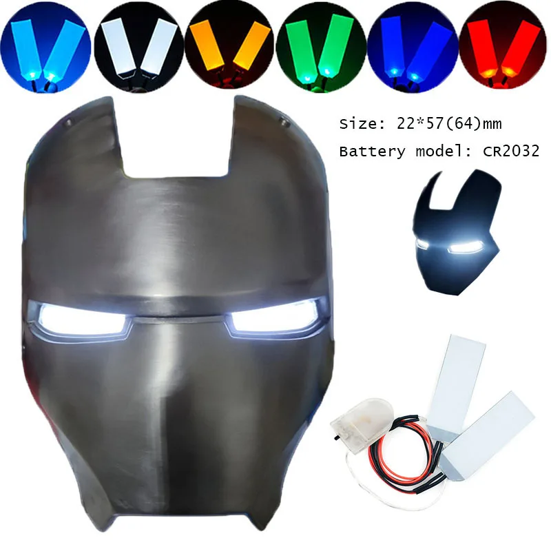 Маски для Хэллоуина со светодиодсветильник кой, набор сделай сам для шлема Тони Старка для косплея, Модифицированная маска с светящимися глазами, аксессуары CR2032