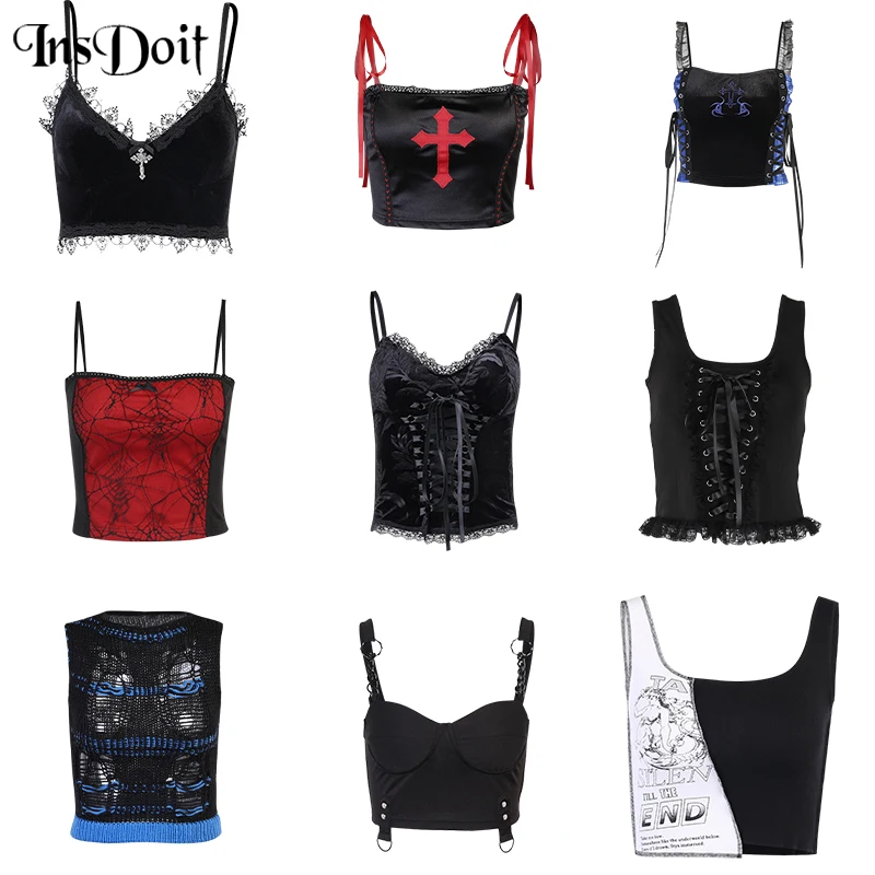Женский Готический корсет без рукавов InsDoit, черный кружевной уличный топ с принтом в стиле Харадзюку, летний короткий топ, 2019