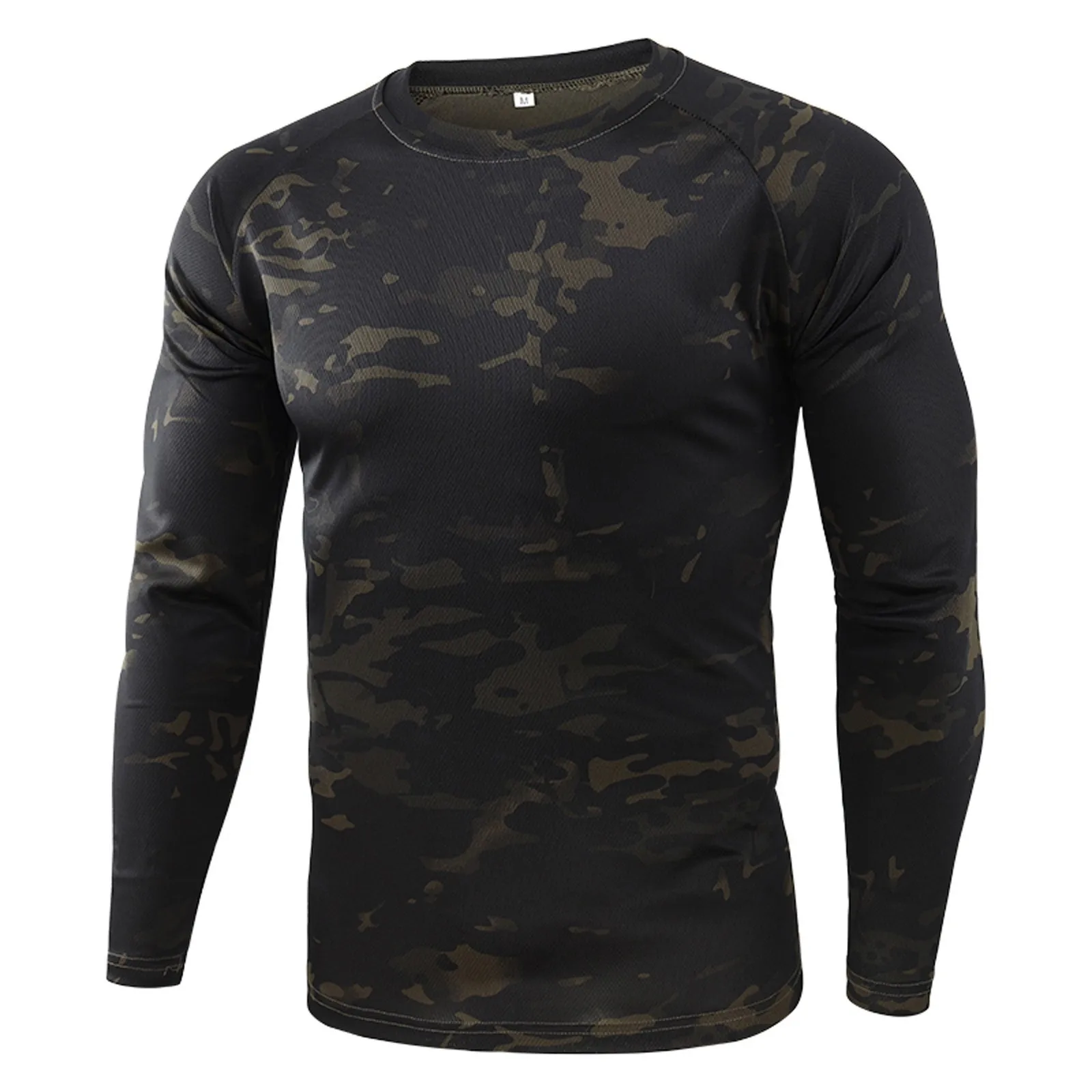 Мужская камуфляжная футболка с длинным рукавом, дышащая облегающая футболка в стиле милитари, тактическая одежда для улицы, 2021