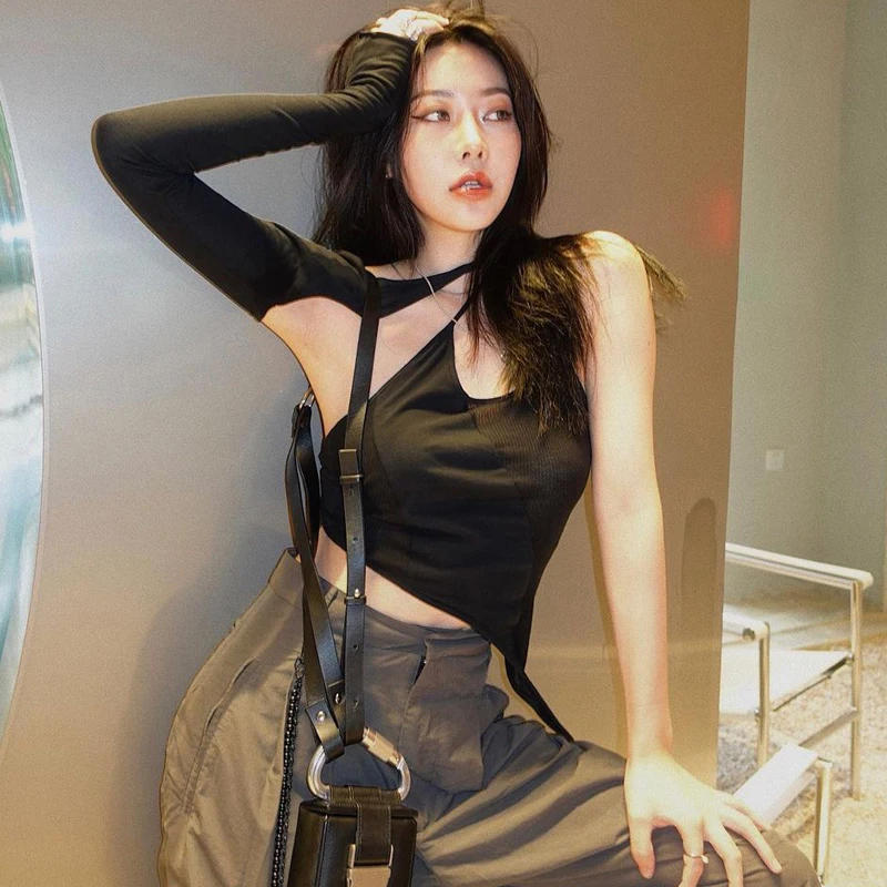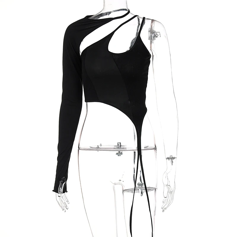 Футболка женская на одно плечо, с длинным рукавом, в стиле пэчворк, на осеньзиму, 2021