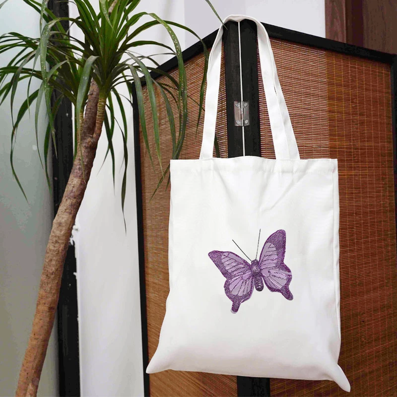 Холщовые сумки с бабочками, женская сумка, шоппер из морского хлопк...