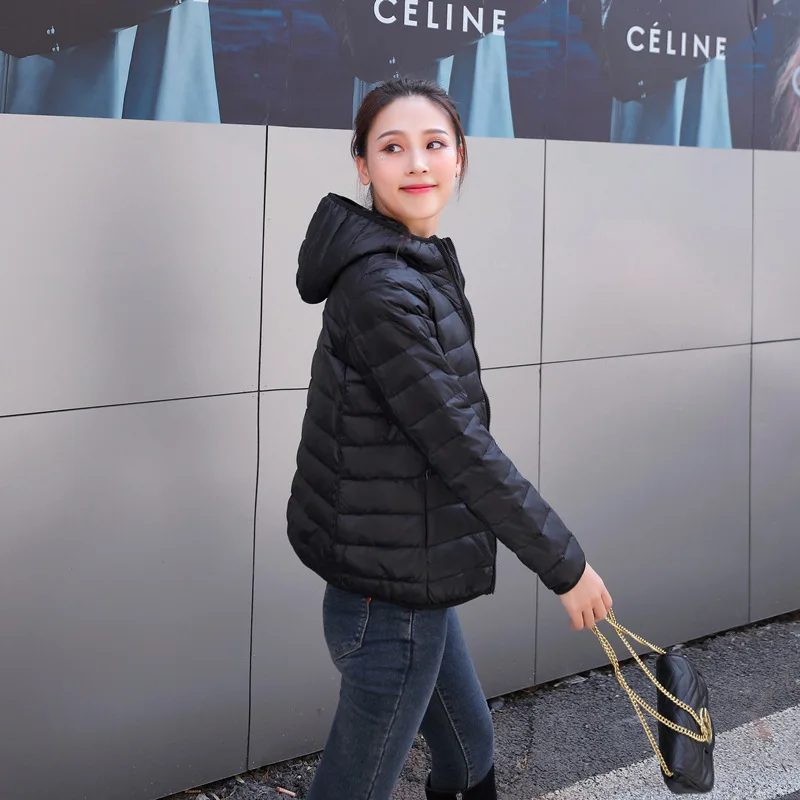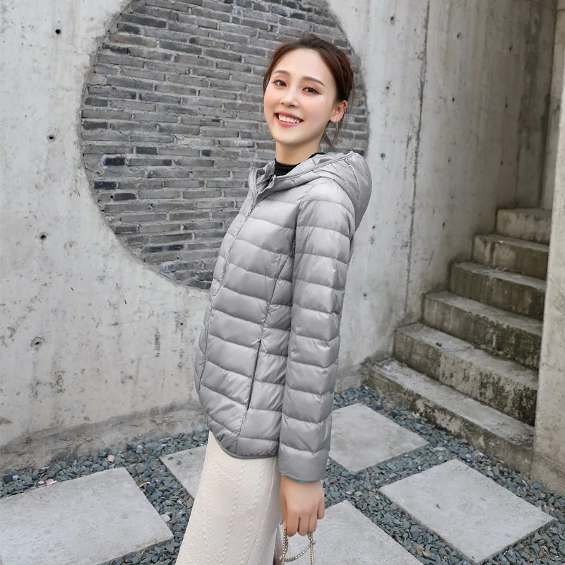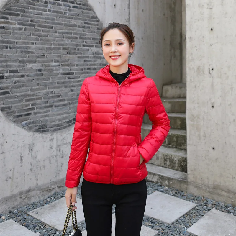 Пуховик женский однотонный, на белом утином пуху, Осень-зима ультралегкие куртки, 2021