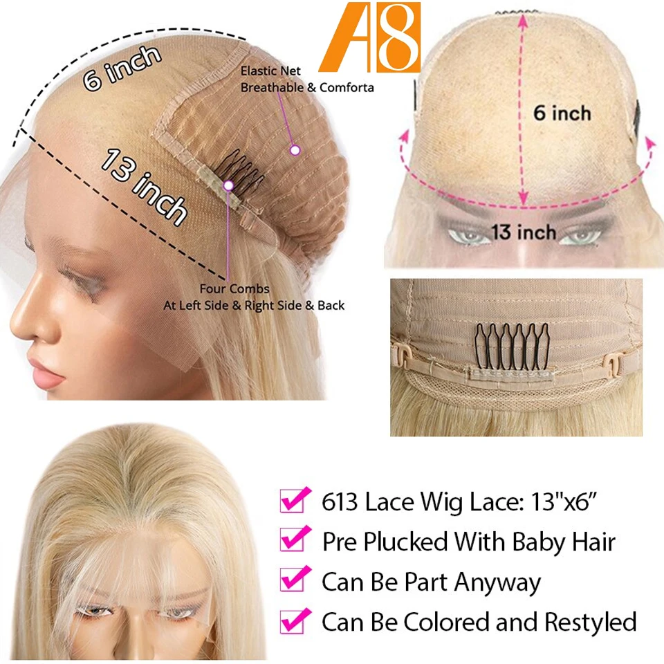 613 Blonde13x6 HD кружевные передние парики из человеческих волос п...