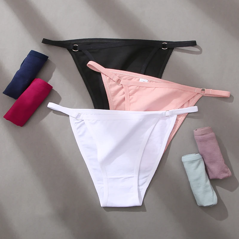 Трусы женские хлопковые с заниженной талией, 3 шт.компл., с металлической пряжкой, M-2XL