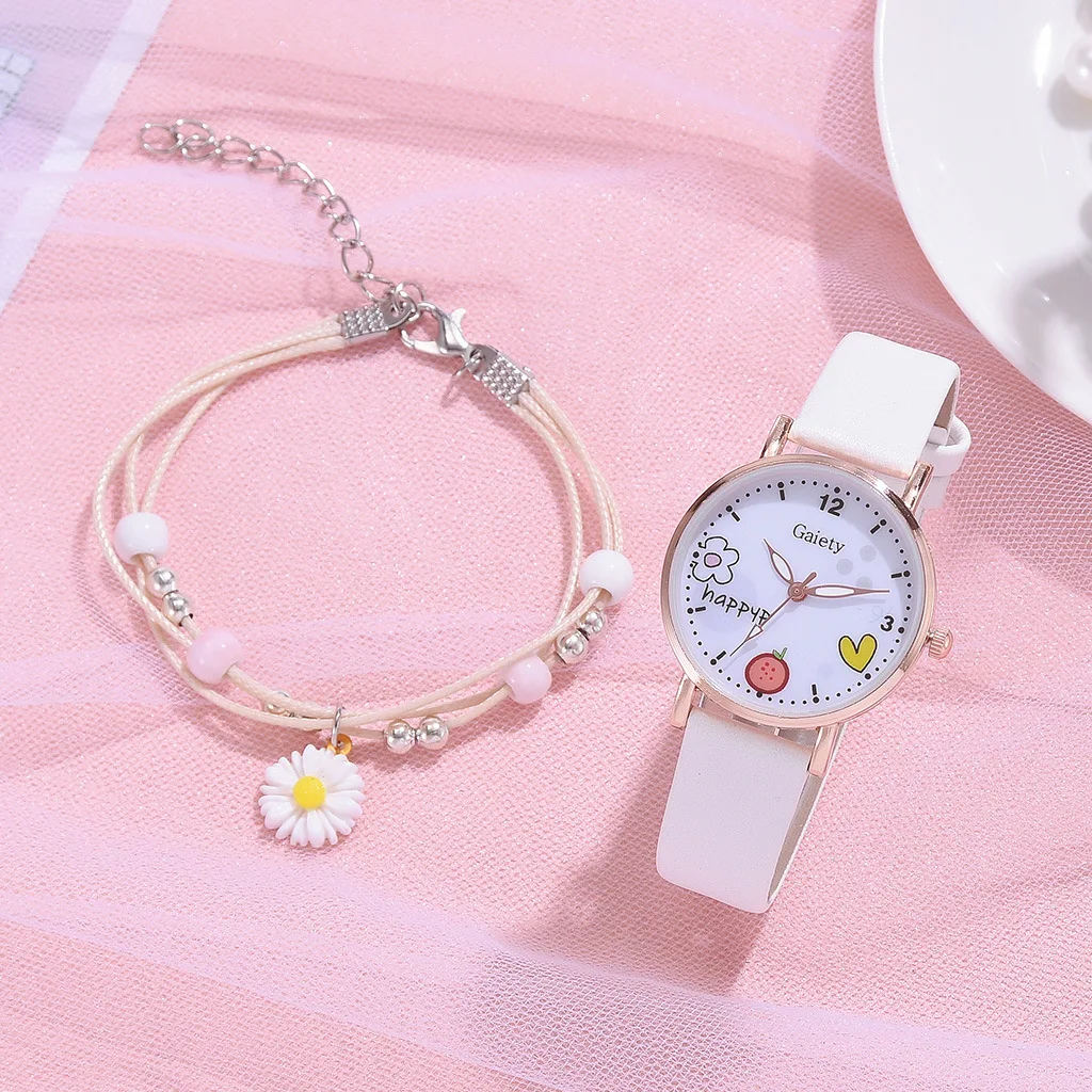 Часы Детские кварцевые для студенток, розовый кожаный ремешок, пода...