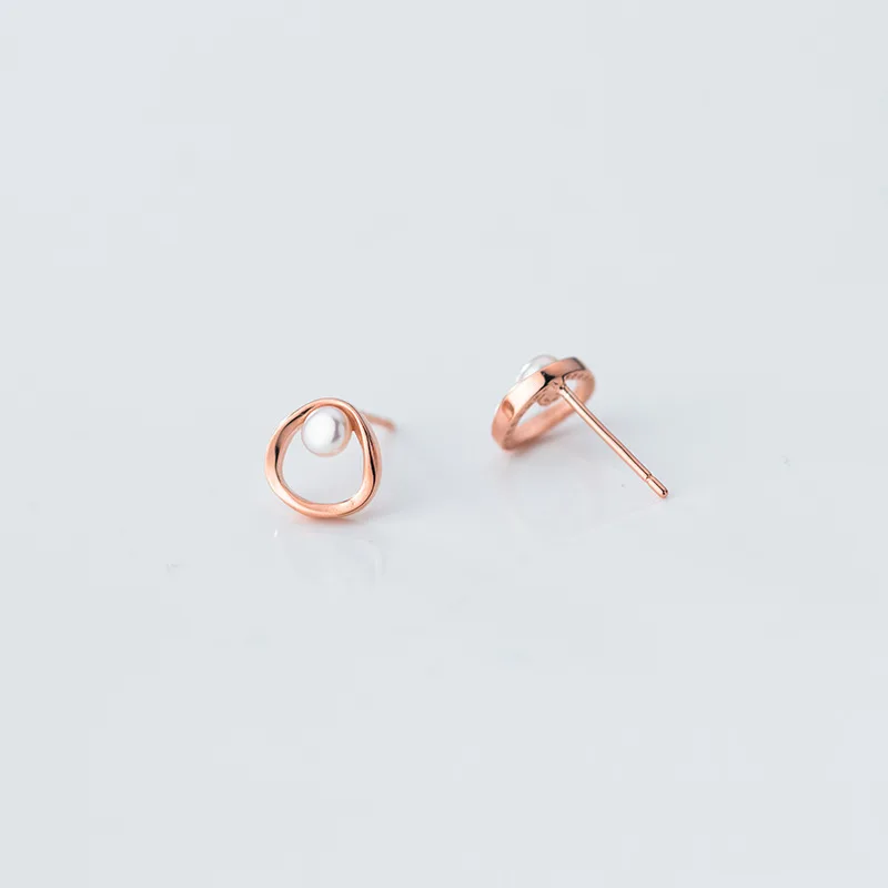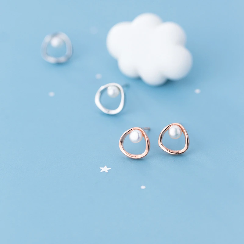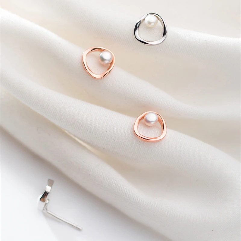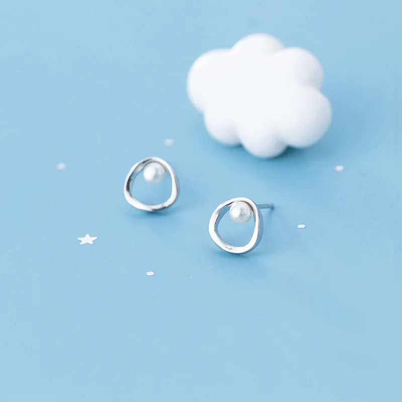LKO Настоящие 925 пробы серебряные ювелирные изделия, модные круглые жемчужные серьги-гвоздики для женщин, свадебные украшения, милые полые серьги-гвоздики