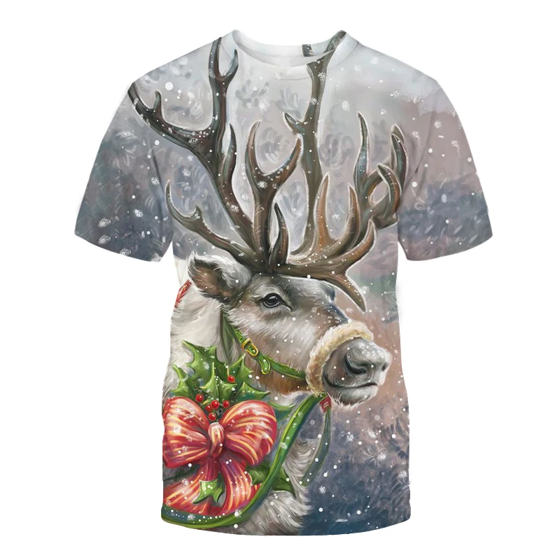 Новинка летняя футболка с коротким рукавом с рождественским рисунко...