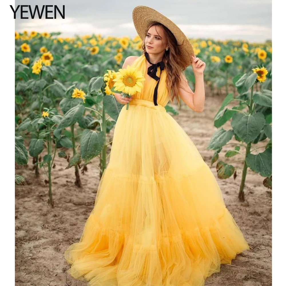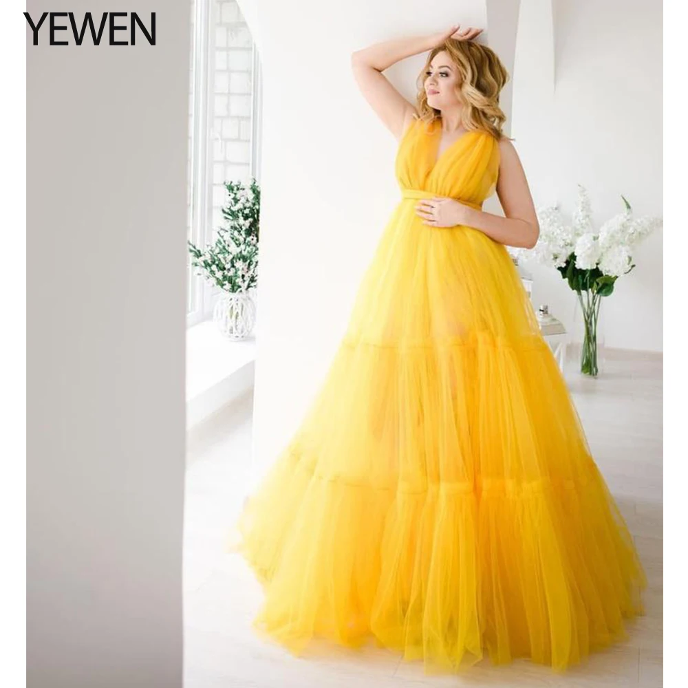 Ярко-желтое женское платье на выпускной для беременных платье для фотосессии для будущей мамы платье макси с открытой спиной для свадебной вечеринки платье YEWEN