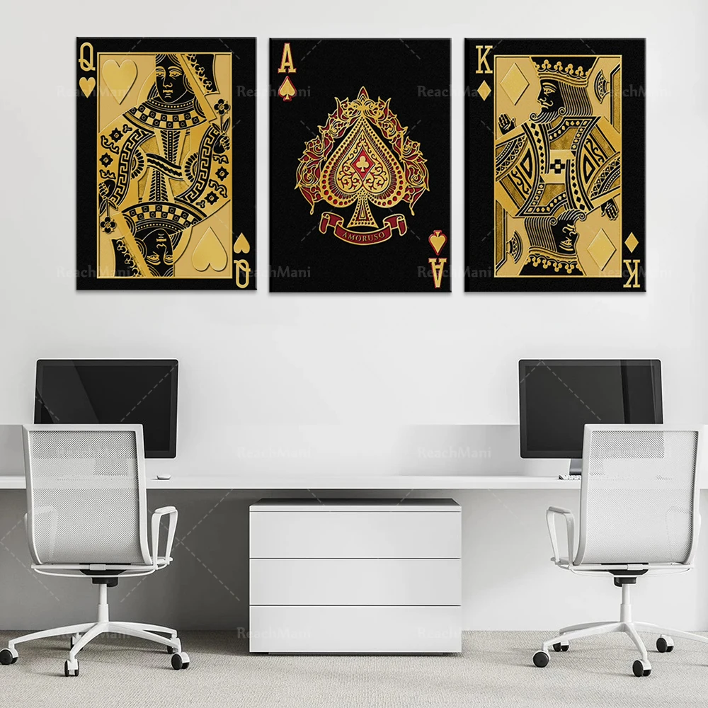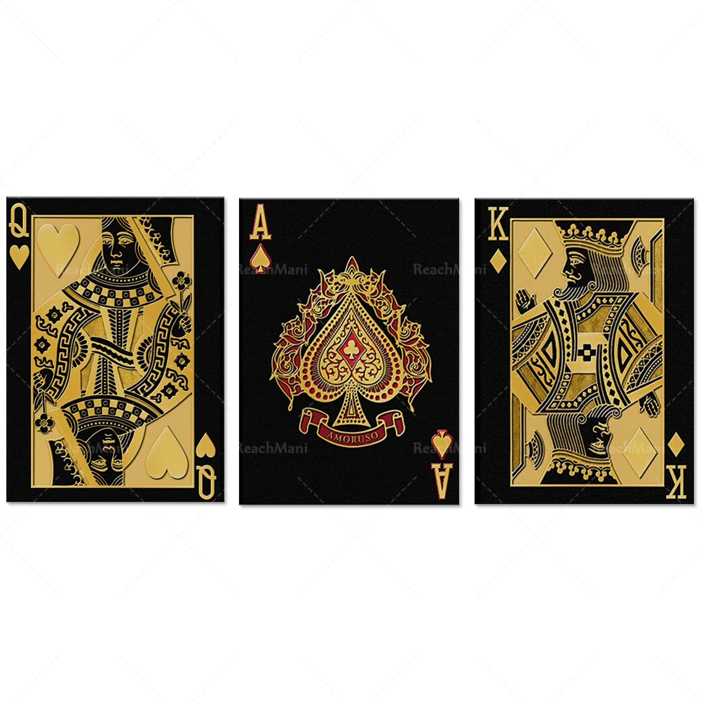 Настенное украшение King Queen Canvas King с принтом игральных карт, покер с рисунком в виде сердца для игровой комнаты