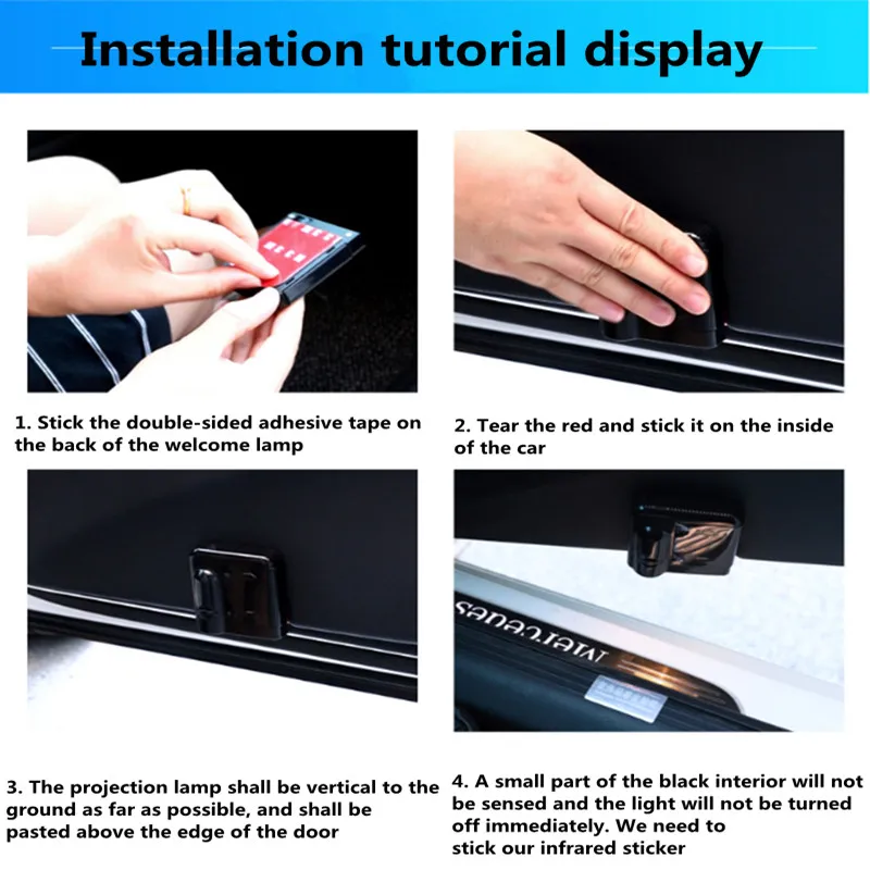Подходит для:Универсальный для KIA car Особенности:1. Этот светильник без дрели Ghost Shadow не является беспроводным, он специально разработан для автомодификации fancier, и он не разрушит оригинальный внешний вид автомобиля, что принесет больше удовольствия водителям.2. Ослепляющий светильник с логотипом и сигнальный светильник будут отображаться на земле, когда вы откроете дверь автомобиля, и он выключится при закрытии двери.3. Может быть установлен в обоих влево или вправо двери, любезно дверь светильник делает ваш автомобиль художественно. Характеристики:Цвет: черныйМатериал: АБС-пластикПитание: 3 аккумулятора AAA (не входят в комплект). Установки:Простая установка, не нужно просверливать отверстие, просто приклейте светильник на дверную панель и приклейте магнит в нижней части рамы автомобиля. Никакого вреда для вашего автомобиляПосылка:2 шт. дверный проектор с логотипом (2 шт. для 2 дверей)