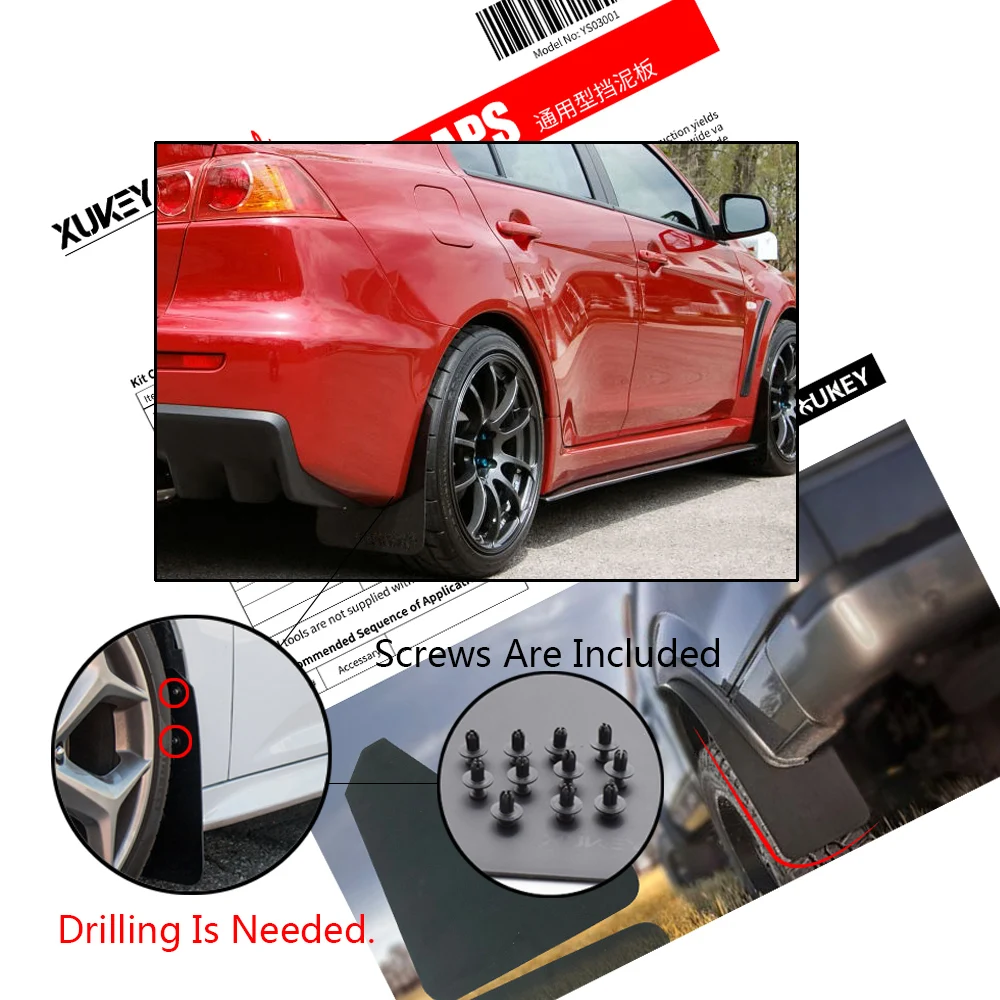 Материал: высококачественный ПП + ТПО пластик. Литые Брызговики.Посылка включает в себя:4 шт. (1 комплект)Сумка для фиксации винтовИнструкция по установке