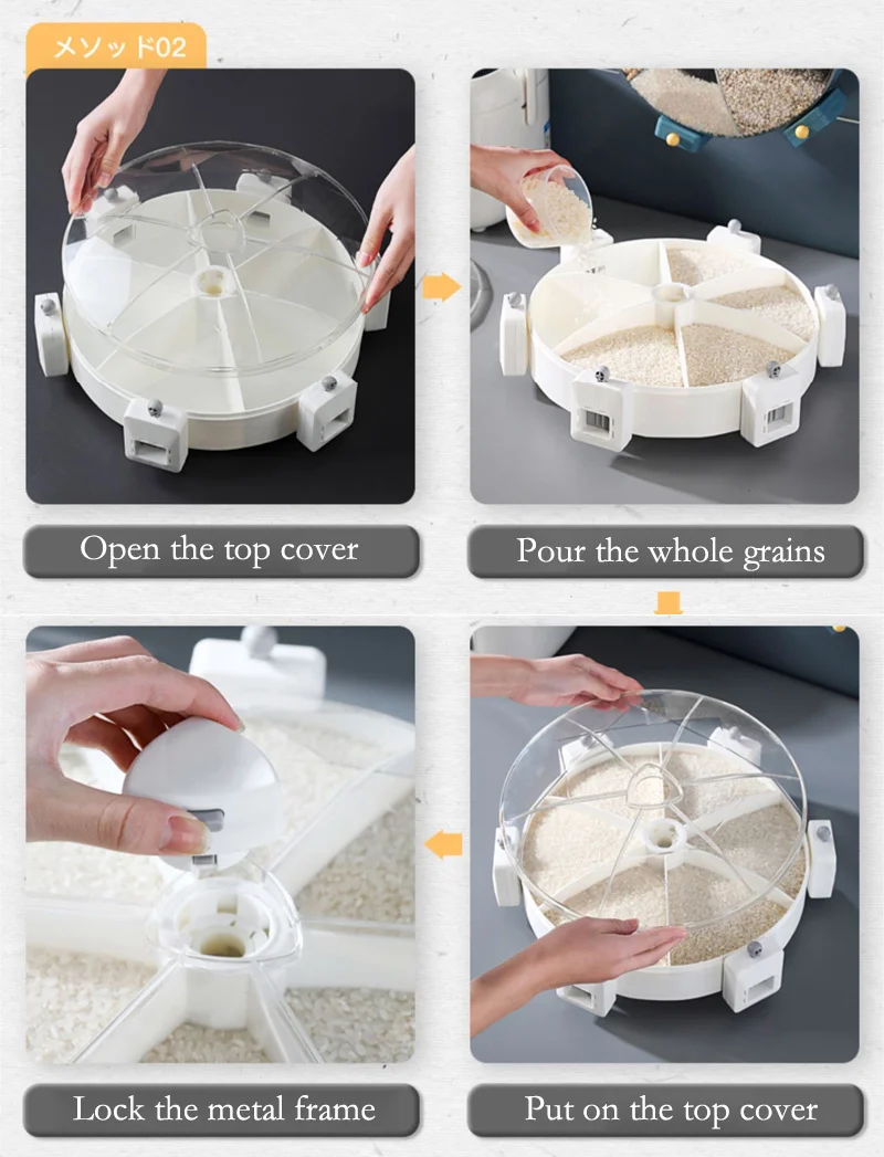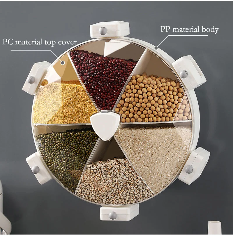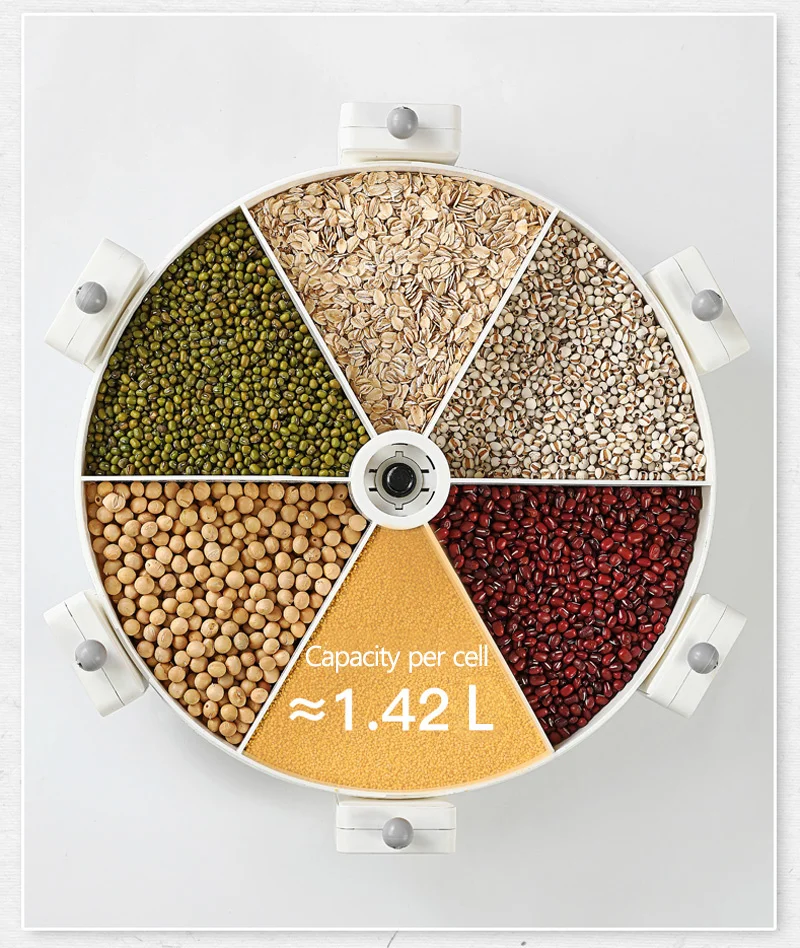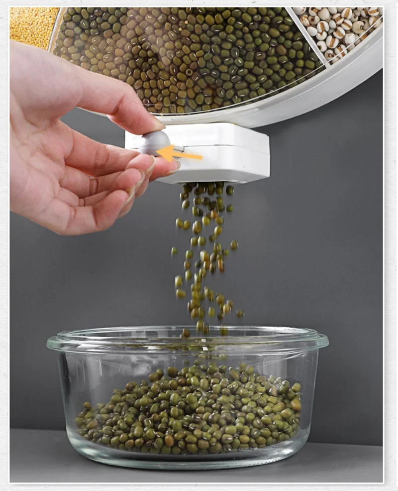 Вращающийся диспенсер для сухой пищи, герметичные контейнеры для хранения хлопьев, контейнер для риса, бытовой контейнер для хранения пищевых продуктов с мерной чашкой-воронкой