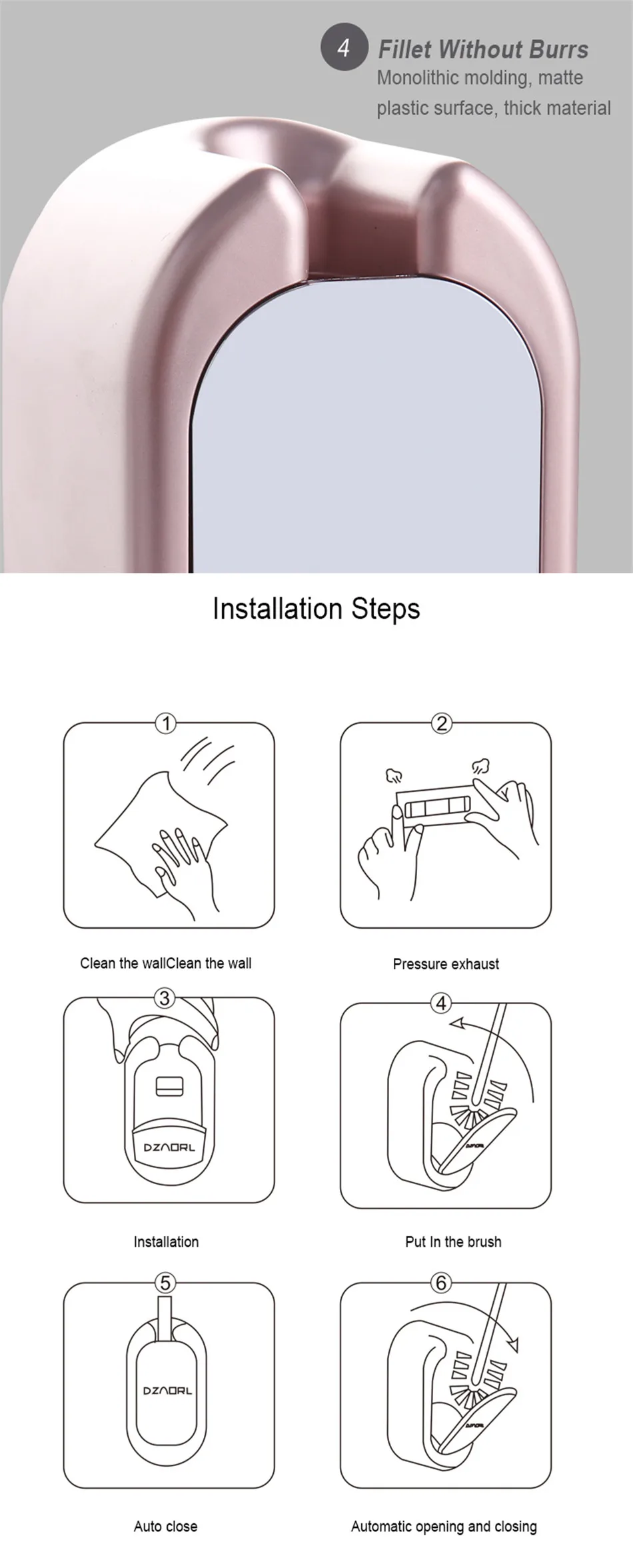 Шаги 2: приклейте бесследный клей к стене и надавите на воздух (Примечание: После крепления клея, пожалуйста, подождите более 24 часов, чтобы клей хорошо прилипал, А затем Повесьте держатель туалетной щетки, чтобы закончить установку)