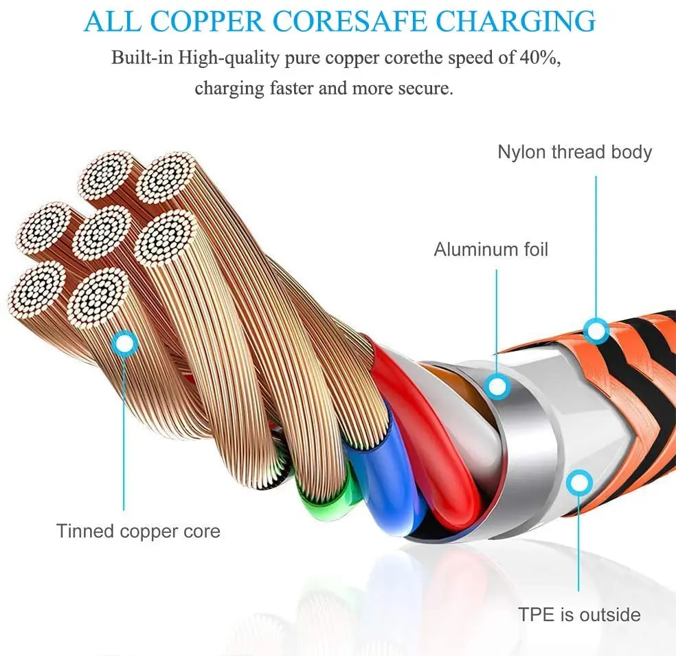 2. Встроенный сердечник из чистой меди высокого качества, ускорение около 40%, быстрая и безопасная зарядка;