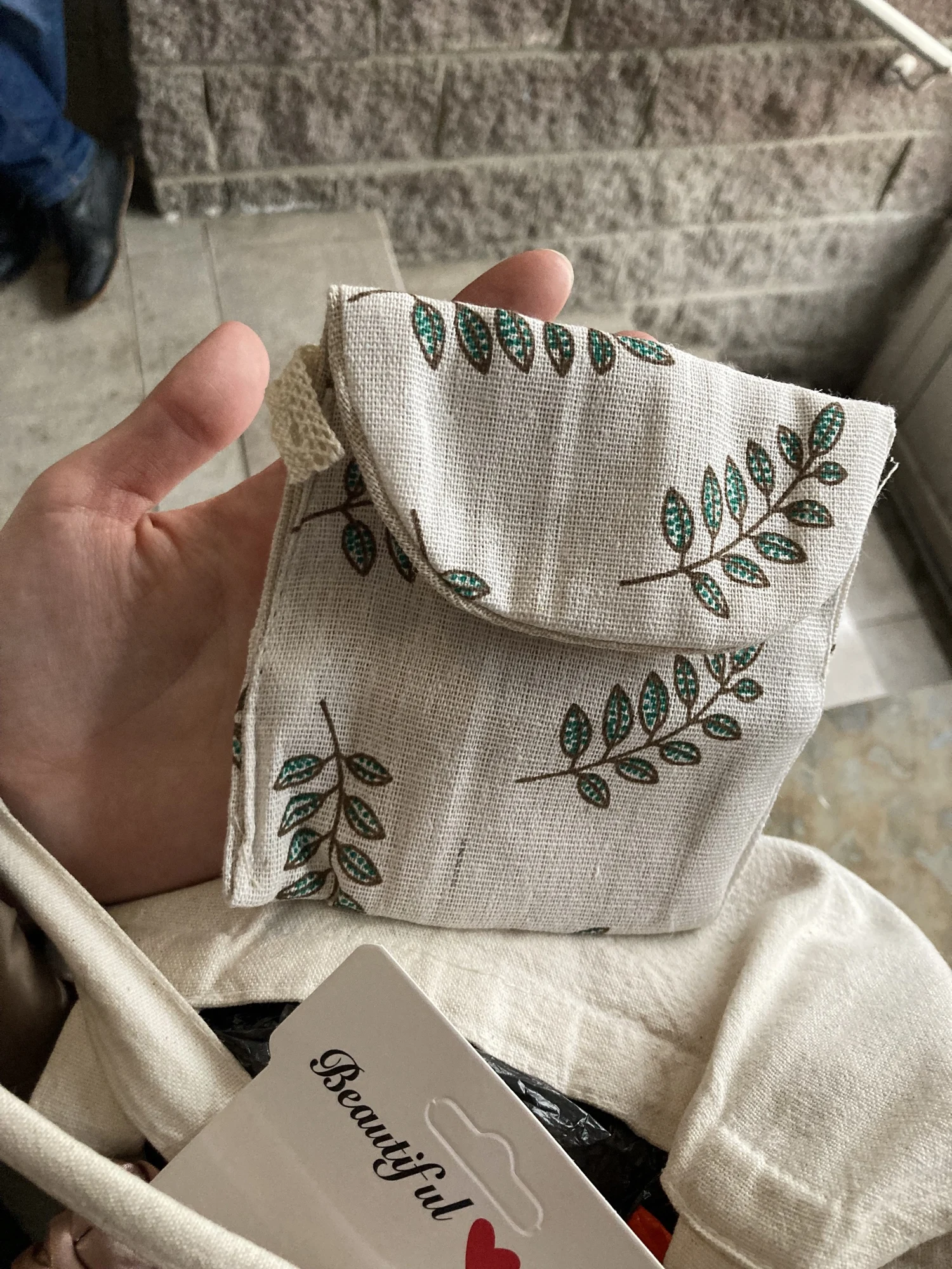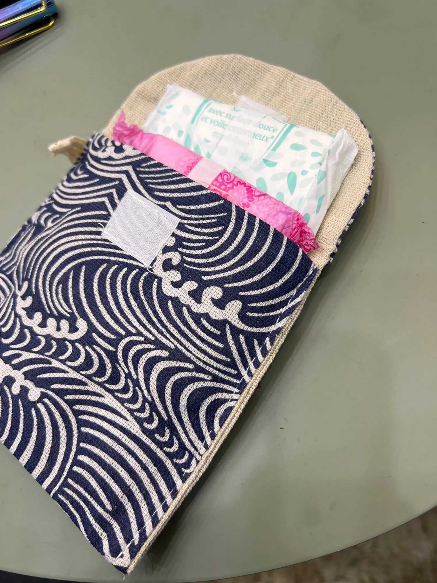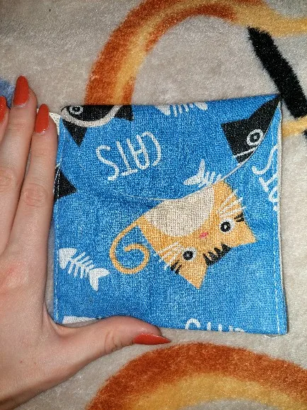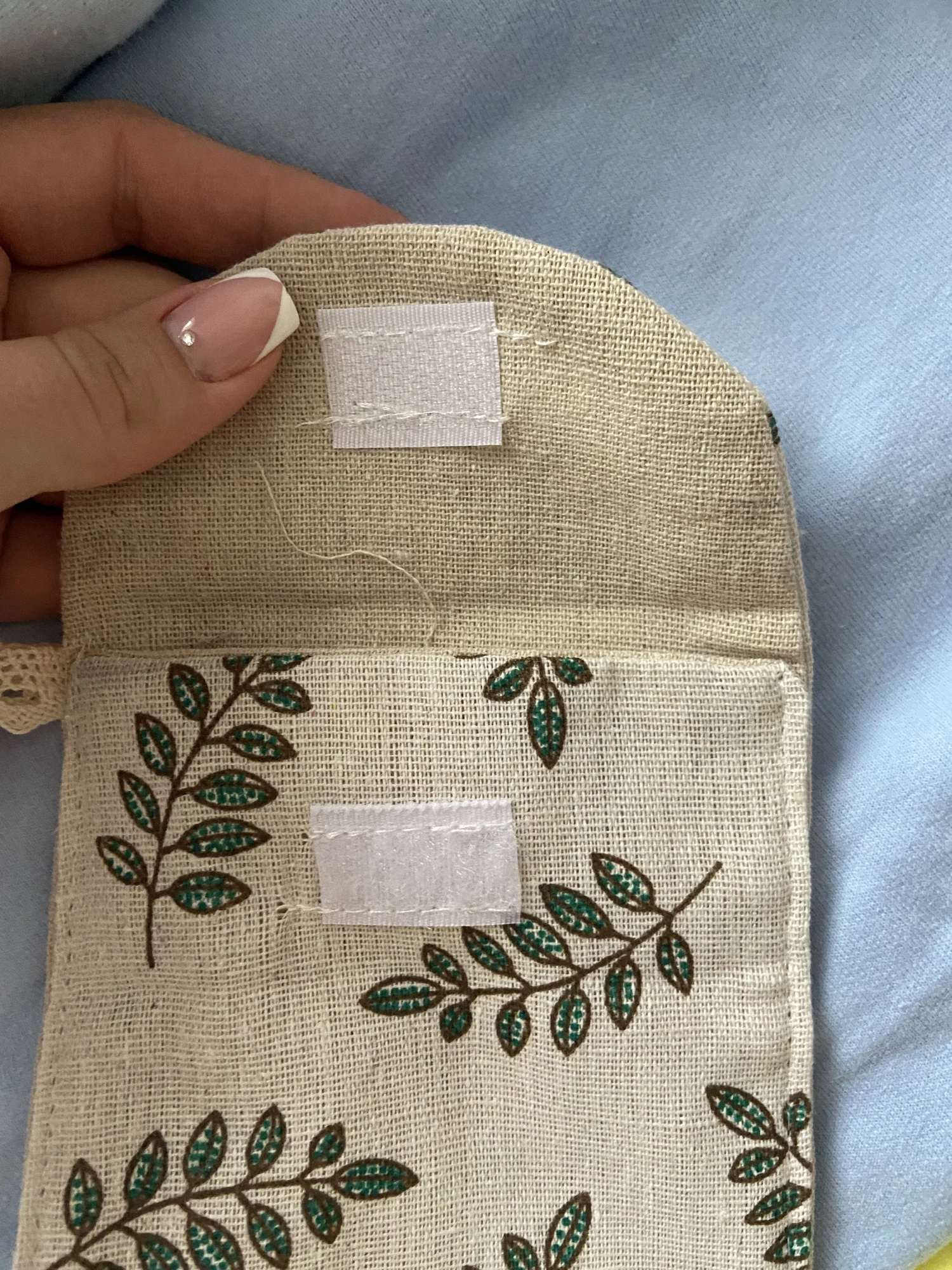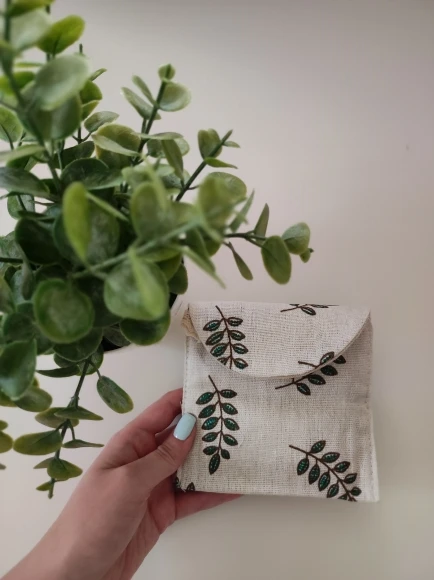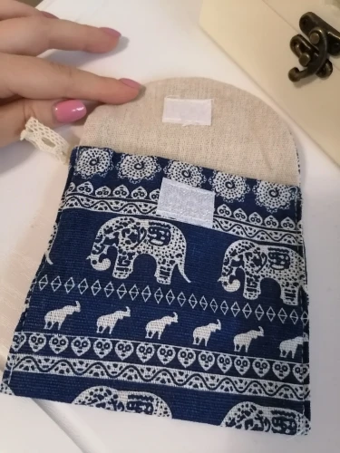 Прекрасний мішечок для засобів гігієни. Якісний матеріал та добре пришита липучка впринципі як і весь мішечок. Цупкий матеріал, не просвічується і вміщає кілька прокладок. Вміститься в кожну сумочку. Рекомендую з продавцем не спілкувалася