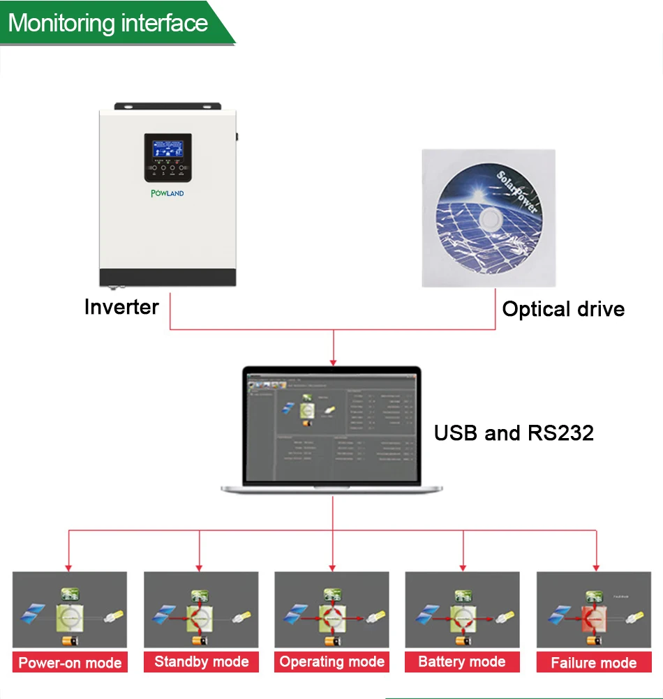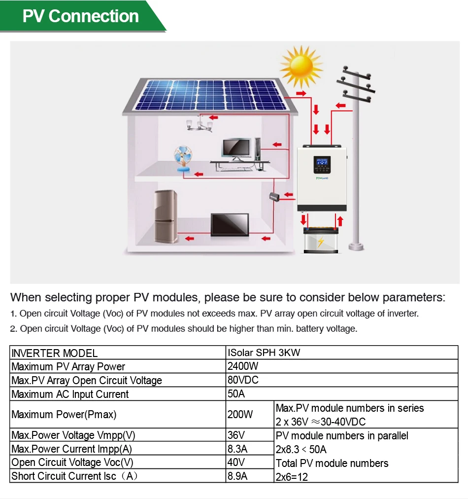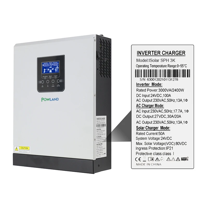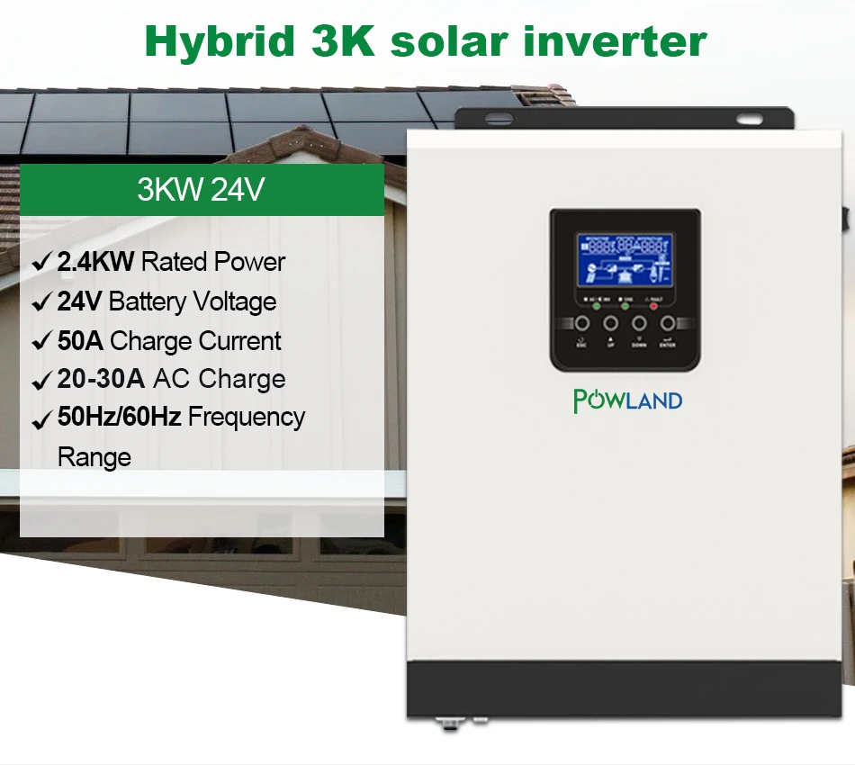 Солнечный инвертор Powland 3000 Вт, ва, гибридный немодулированный синусоидальный сигнал 24 В постоянного тока, вход в переменного тока, выход, встроенный ШИМ контроллер солнечного зарядного устройства 50 А