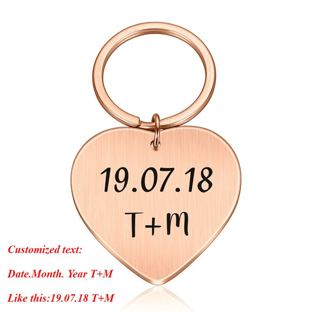 Персонализированные брелок из нержавеющей стали кулон в виде сердца с гравировкой даты пара брелок подарок девушке модницы аксессуары