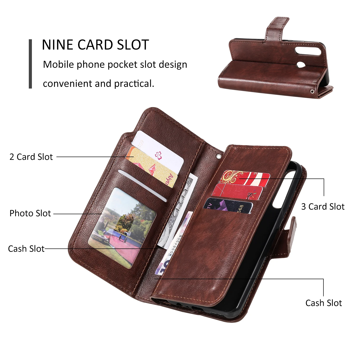 Feature 1Luxury PU Leather Card Slots Flip Shockproof Protective Case Carcasa