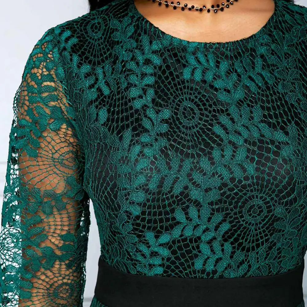 Новинка 70%, вечернее кружевное женское платье-миди составного кроя с длинным рукавом