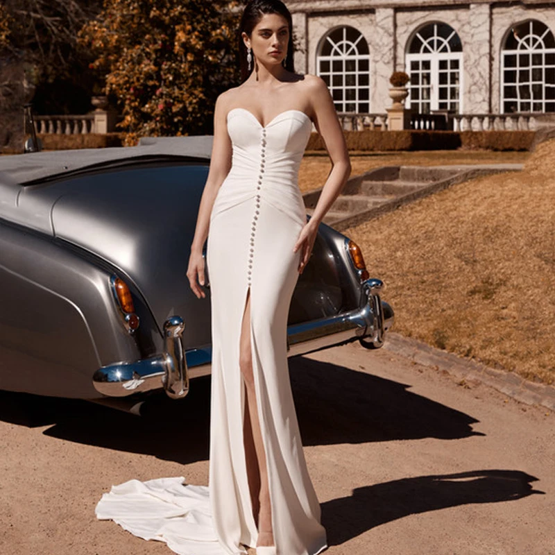 Женское свадебное платье без рукавов, с пуговицами сзади
