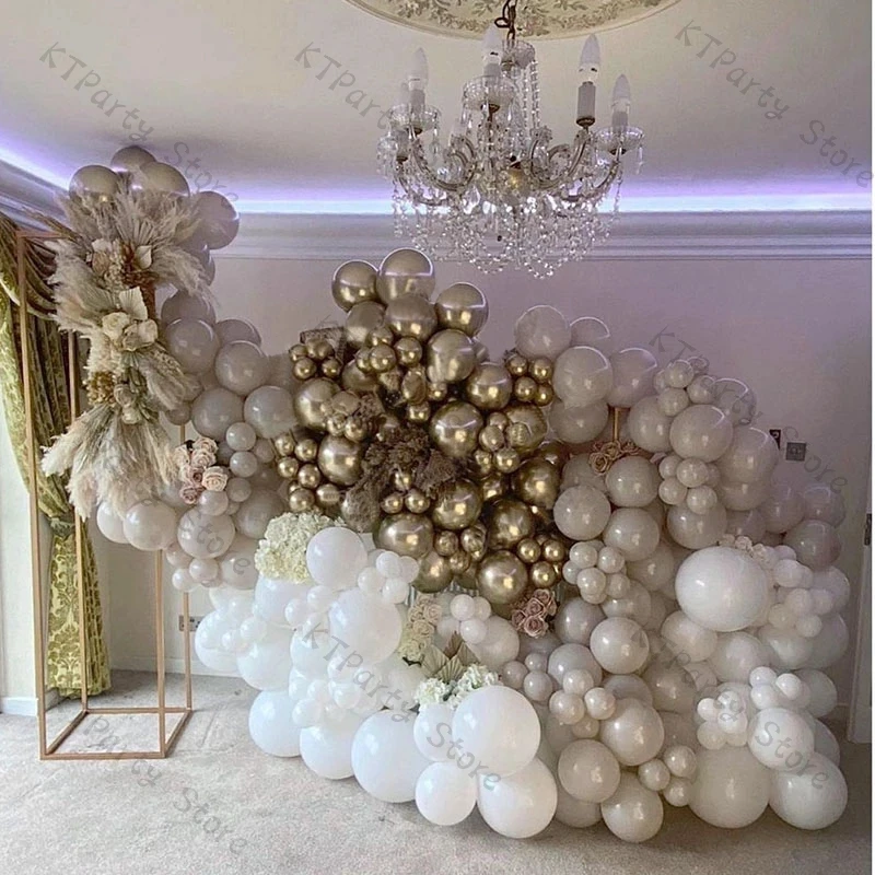 102 шт., матовые белые фотообои, свадебное украшение, хромированные золотые воздушные шары, украшение для дня рождения ребенка