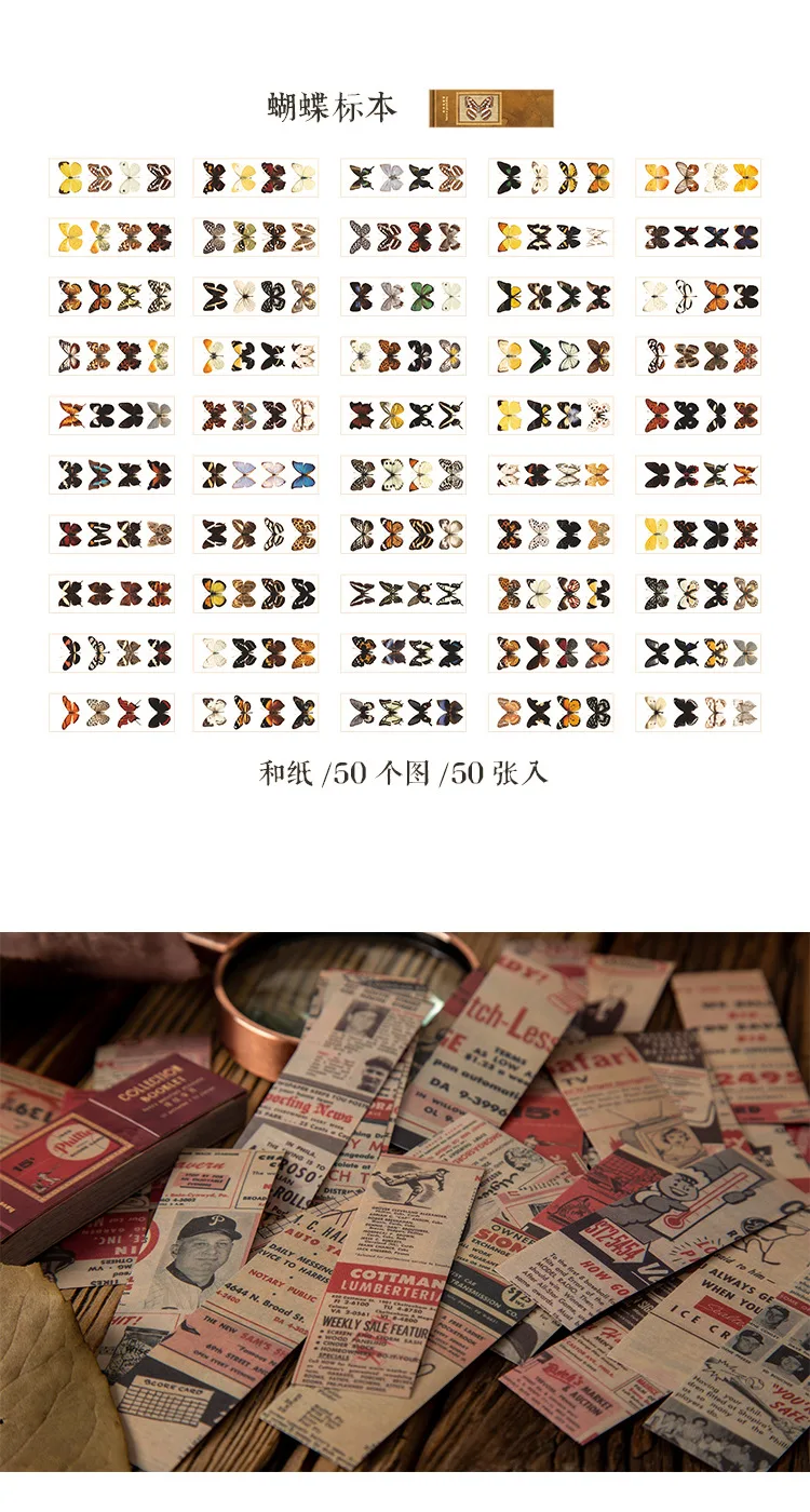 50 шт., длинные наклейки в стиле ретро с изображением бабочек и рас...