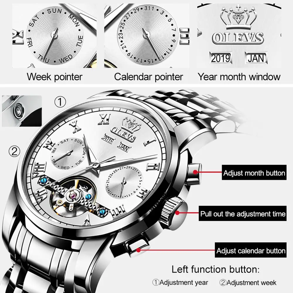 OLEVS автоматические часы из нержавеющей стали мужские механические...