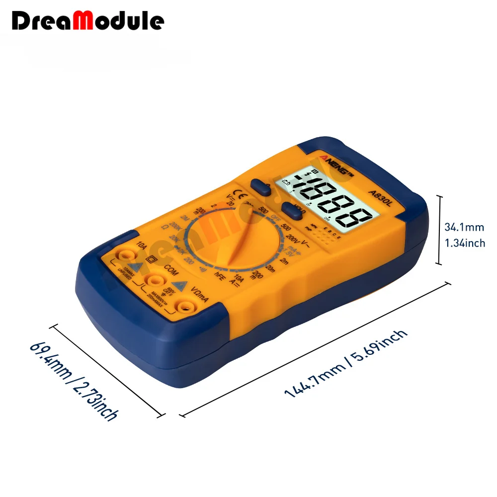 Цифровой мультиметр A830L с ЖК-дисплеем, 1 шт., переменный и постоянный ток, Диод свободной частоты, мультитестер, тестер тока, светящийся дисплей с функцией зуммера