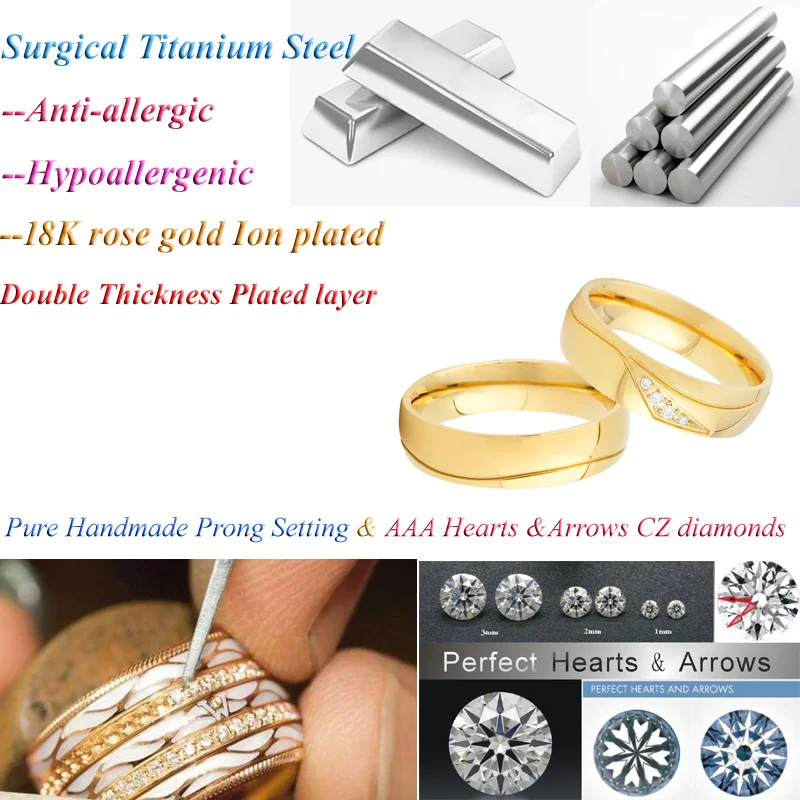 Золотые обручальные кольца для мужчин и женщин, кольца из нержавеющ...