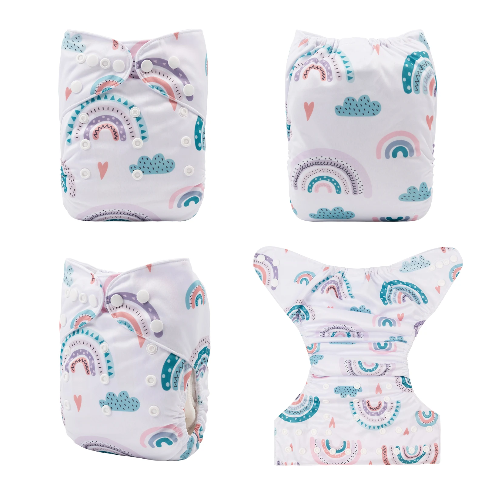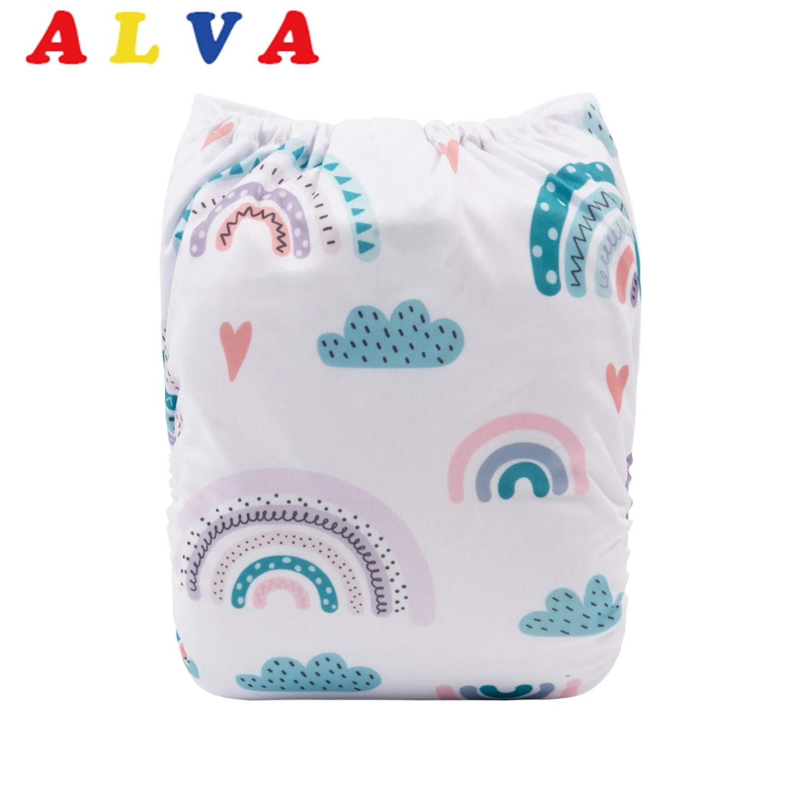 Тканевый подгузник ALVABABY, моющийся многоразовый детский подгузник для мальчиков и девочек с 1 вставкой из микрофибры