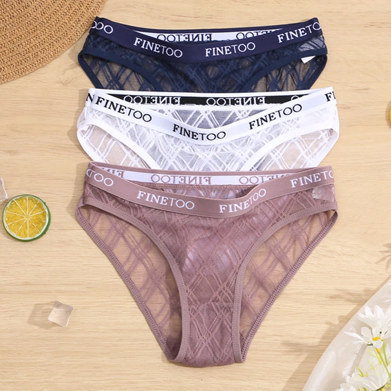 Трусы женские FINETOO, 3 шт.компл., прозрачные, с низкой талией, M-2XL