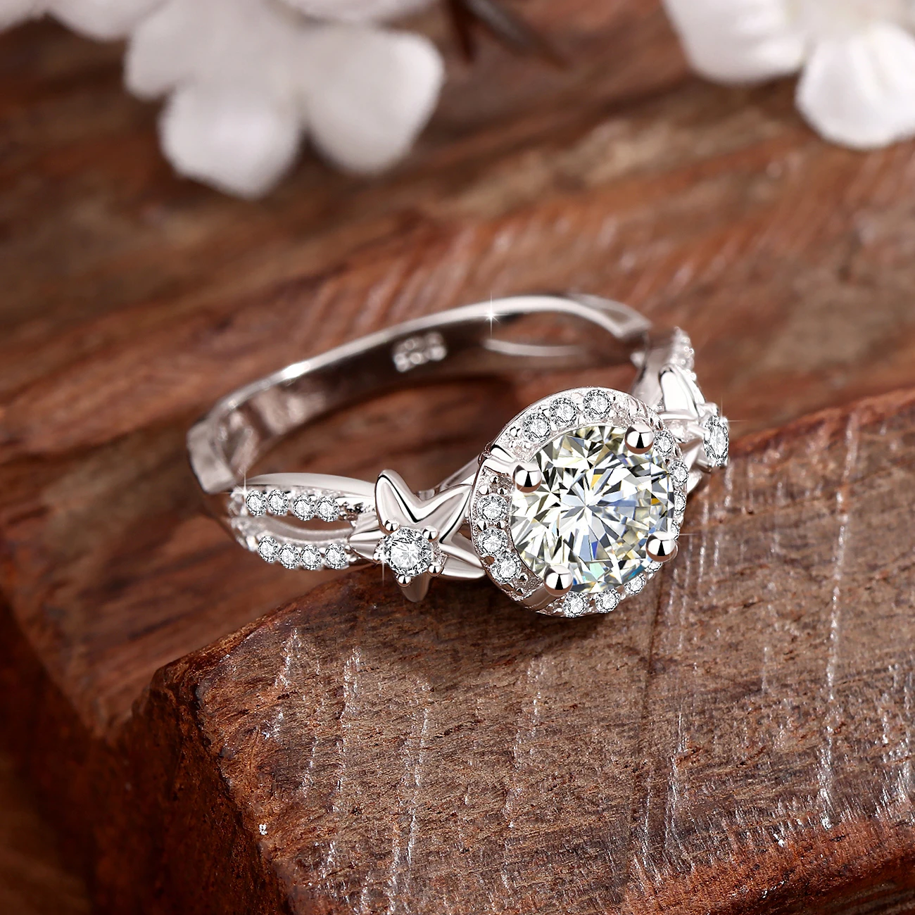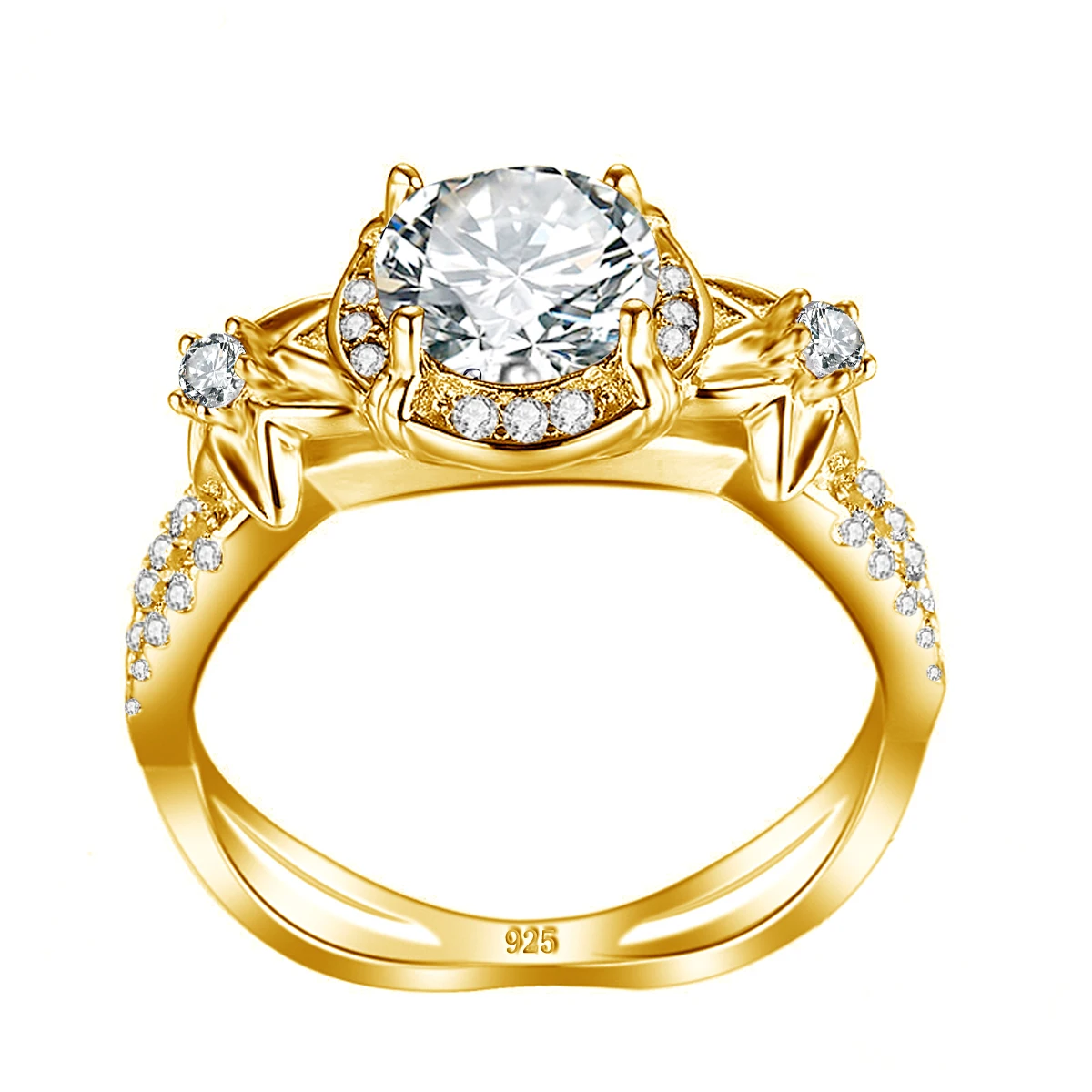 Бренд: Rosewood StoryОсновной камень: камень МуассанитБоковой камень: AAA + фианитКамень Муассанит Размеры: 7 мм, 1.2ctМоиссанит ясность: VVS1Moissanite Цвет: D ЦветФорма камня: круглаяТип металла: твердый 925 пробы с серебряным и золотым покрытиемMeatal Цвет: желтый/белый золотой цвет