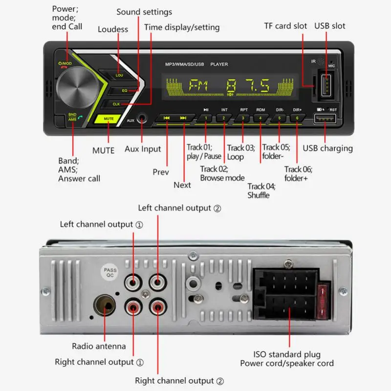 Головного устройства для автомобильного радио Bluetooth-совместимый AUX U диск TF карта mp3-плеер авто стерео Поддержка аудио копия автомобильные аксессуары