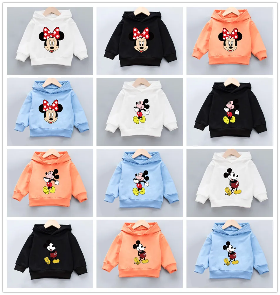 Повседневный свитшот для мальчиков и девочек с Микки и Минни, детские толстовки, свитшот с длинным рукавом, детская одежда, свитшот с капюшоном для девочек