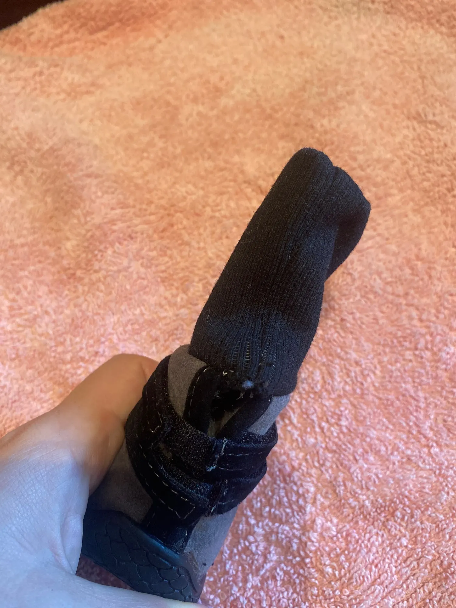 Качество неплохое, но нам не подошли. Подошва хорошая не деревянная, внутри утеплённые, но вот обувать их тяжело так как там где начинается резинка узковато и плохо тянется, лапу трудно засунуть, носить не будем. Может подойдёт на худенькие лапки. Брали на французского бульдога 7-ми мес