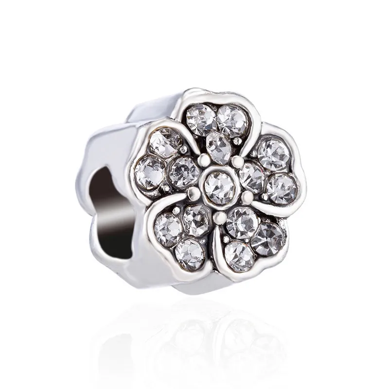 Серебряные Подвески с кристаллами в виде сердца и цветка, подходят для браслетов Pandora, браслеты для женщин, изготовление ювелирных изделий своими руками