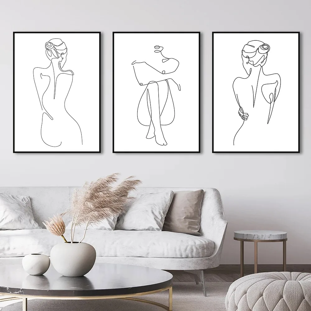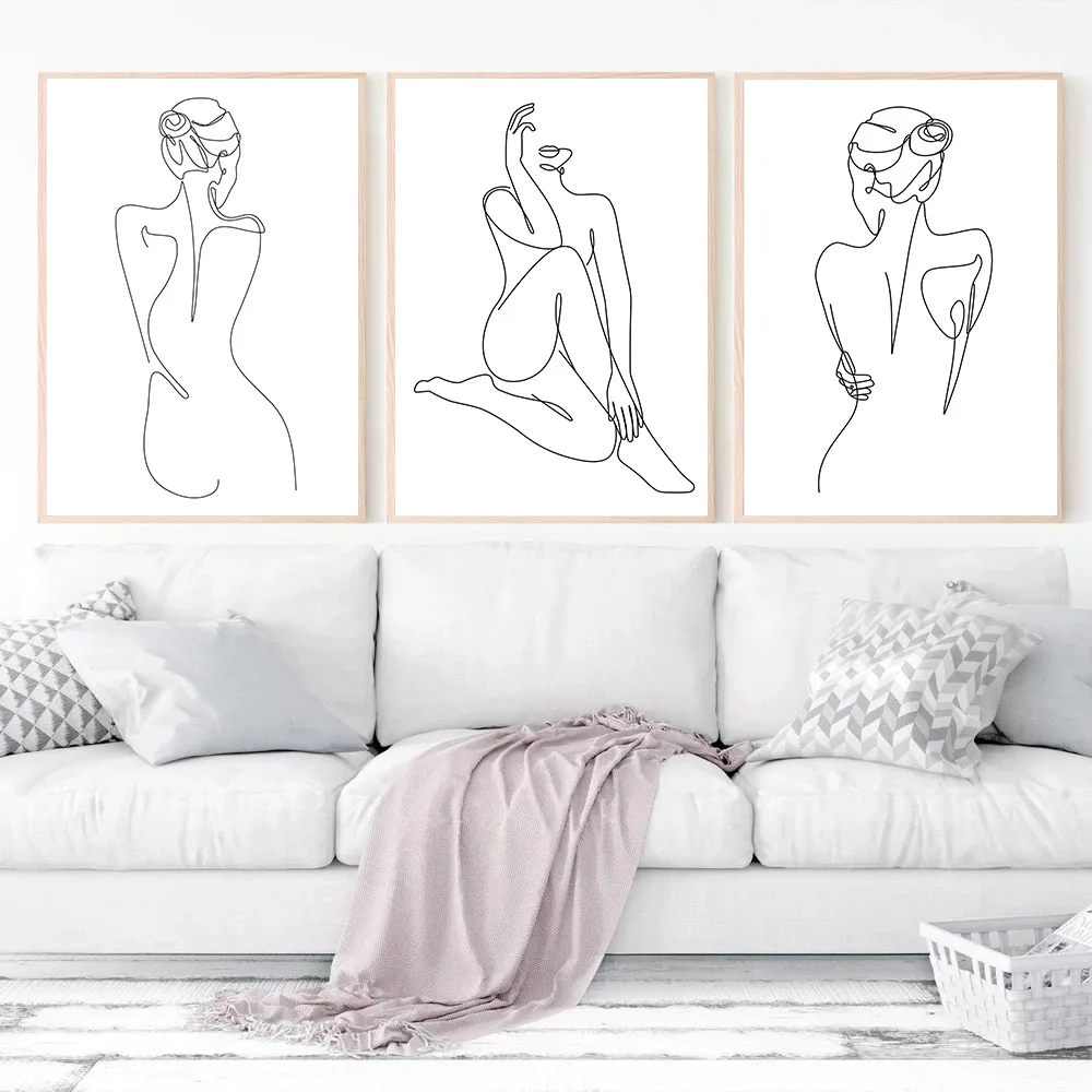 Холщовый постер и печать для обнаженной женщины, абстрактная линия,...